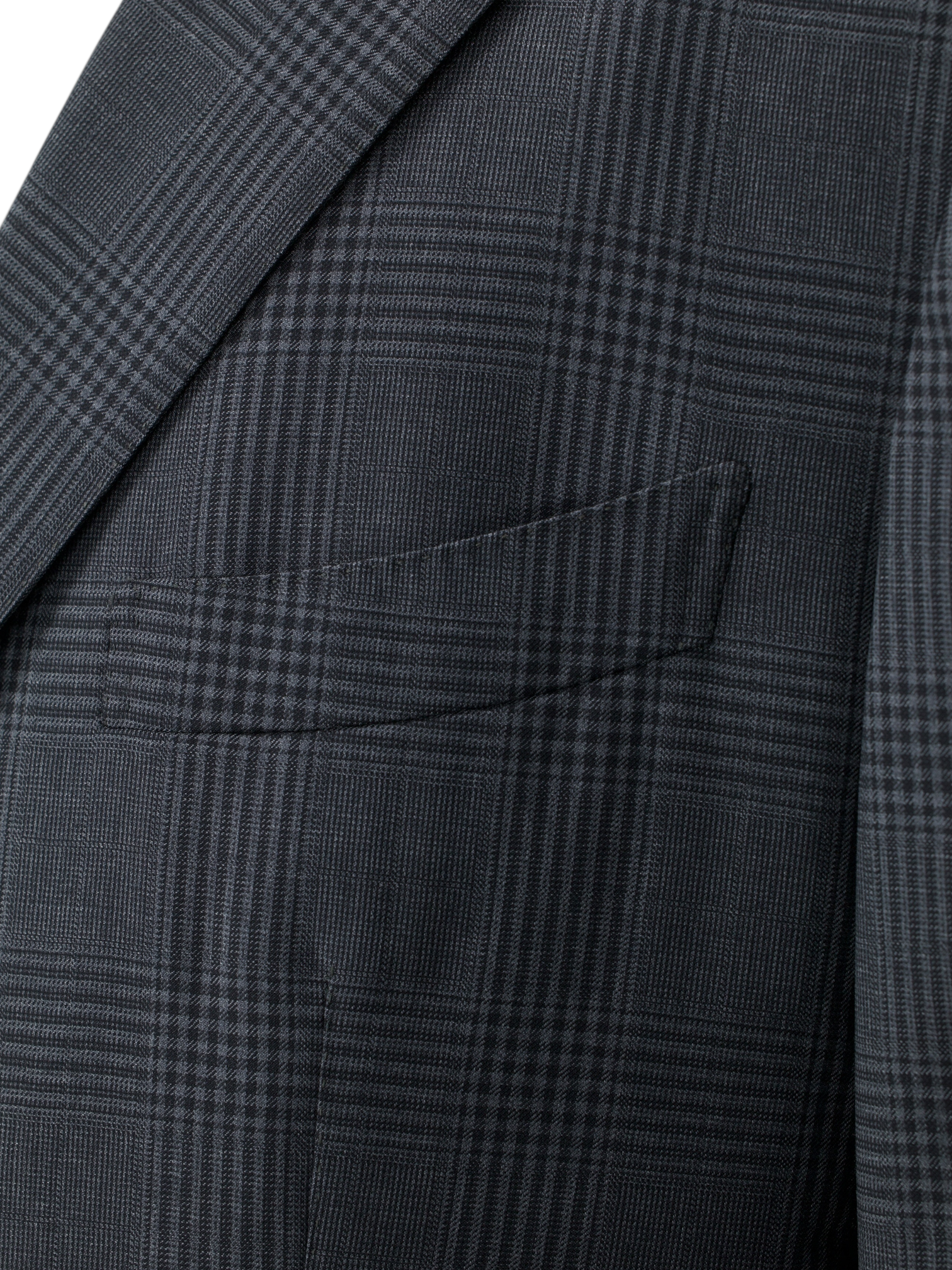 Discover the Tom Ford dark grey Glenplaid suit, cut in the sharp Regency fit from fine wool woven in a classic Prince of Wales check. The jacket features notch lapels, a distinctive 2.5 button closure; a rare configuration in Tom Ford tailoring; and is fully lined with dual vents for structure and movement. Flap pockets with a ticket pocket lend a touch of old-world formality, while the matching trousers are styled with belt loops and a flat front for a clean, modern line.