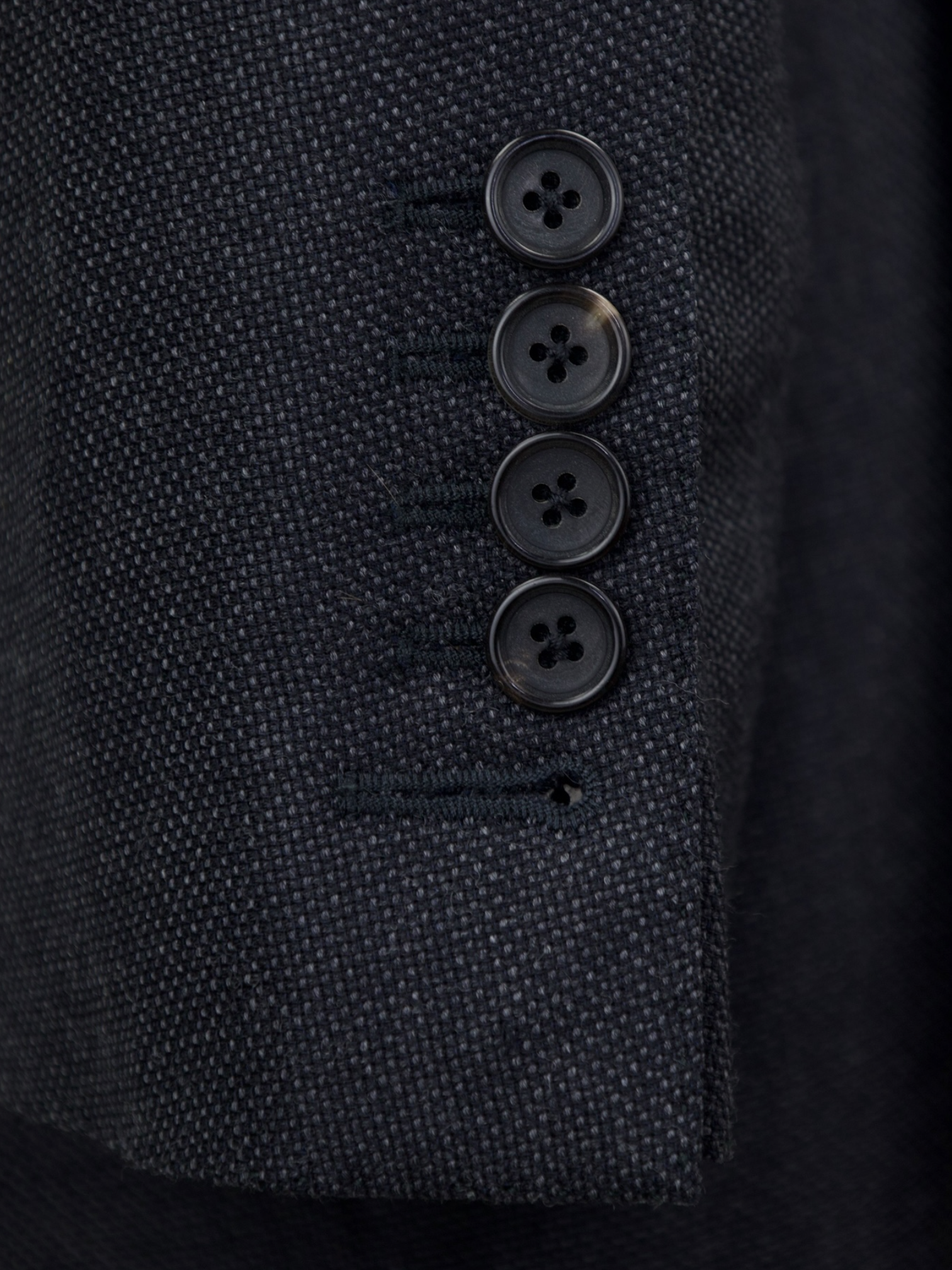 5 functioning horn buttons at the end of the sleeve, with a larger 5th button opening - a quintessential Tom Ford Detail. Even this step, apparently the simplest, is treated with an abundance of detail. Attaching the buttons is a job that requires patience and must be completed to perfection.