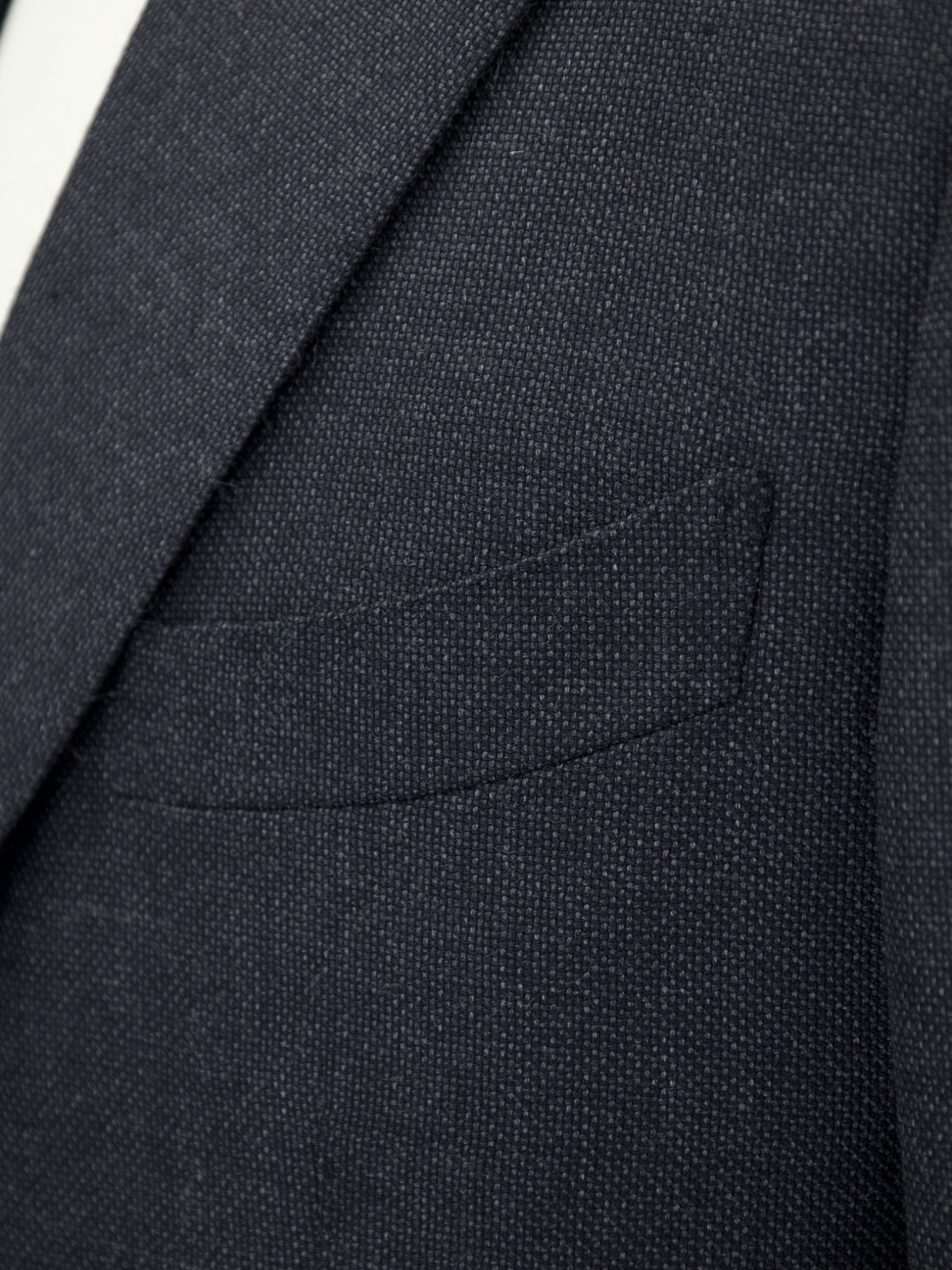 The barchetta chest pocket is not only curved and blunted, as in the southern Italian style, but the corner is rounder right off.