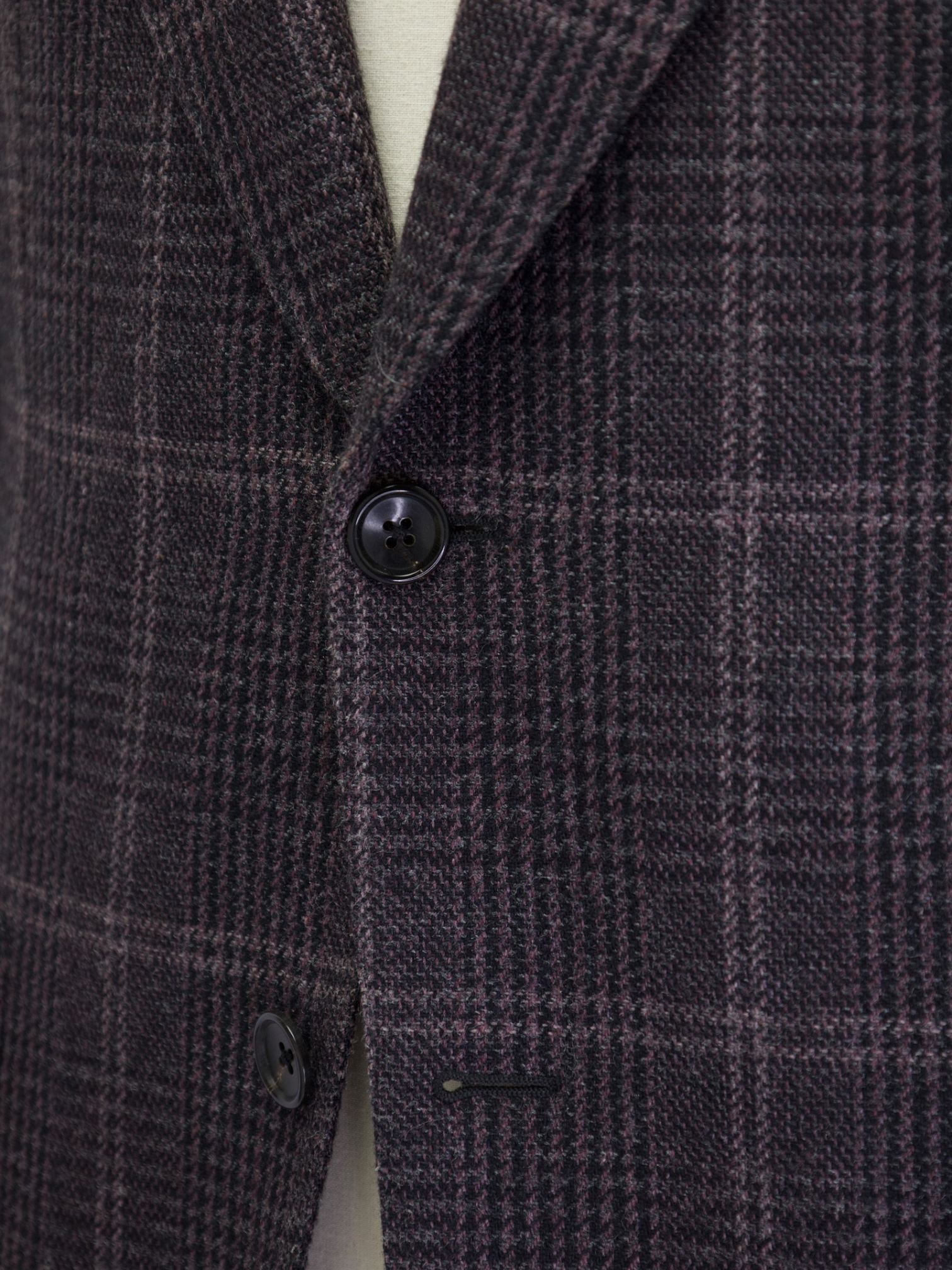 Pre-owned, not loved - yet. The buttons have to be set and the buttonholes have to be created by your local tailor. The (horn) buttons are enclosed within the left inner pocket.