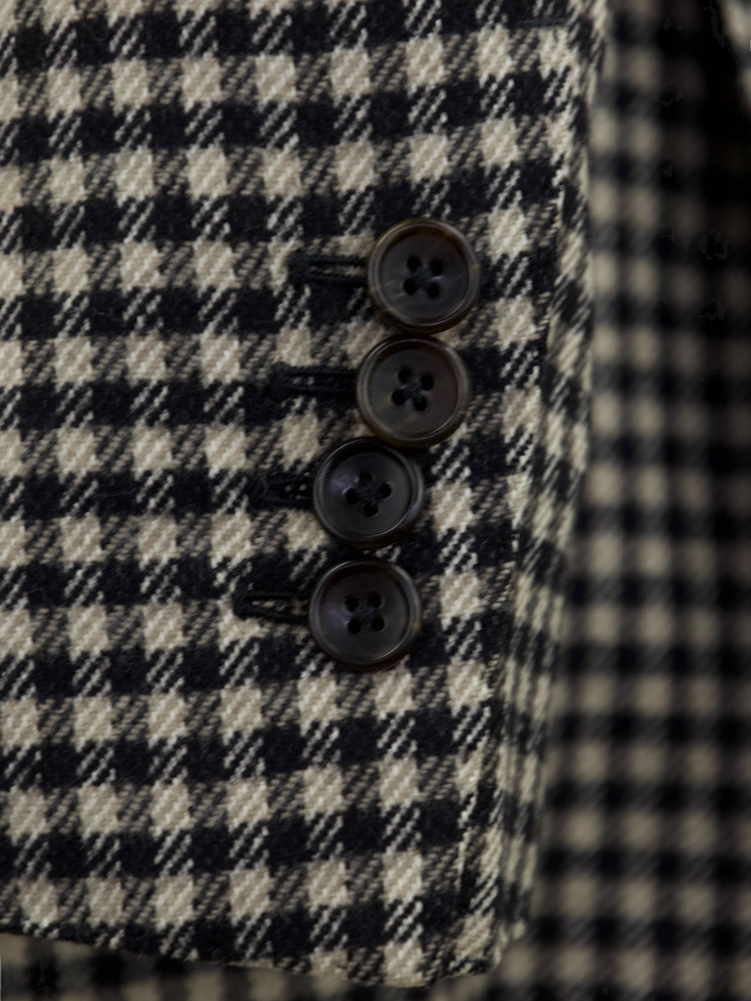 Also known as stacked buttons or waterfall buttons, kissing buttons are associated with Italian tailoring as Italian tailors make their jacket sleeve buttons in the kissing style. In this style, buttons touch each other and overlap one another. Handmade buttonholes; Even this step, apparently the simplest, is treated with an abundance of detail. Attaching the buttons is a job that requires patience and must be completed to perfection.