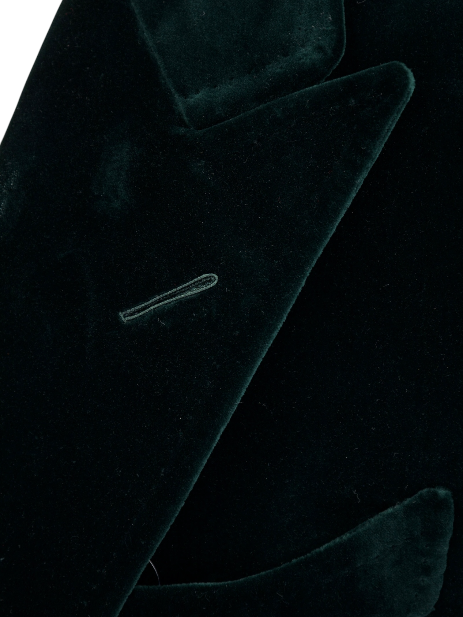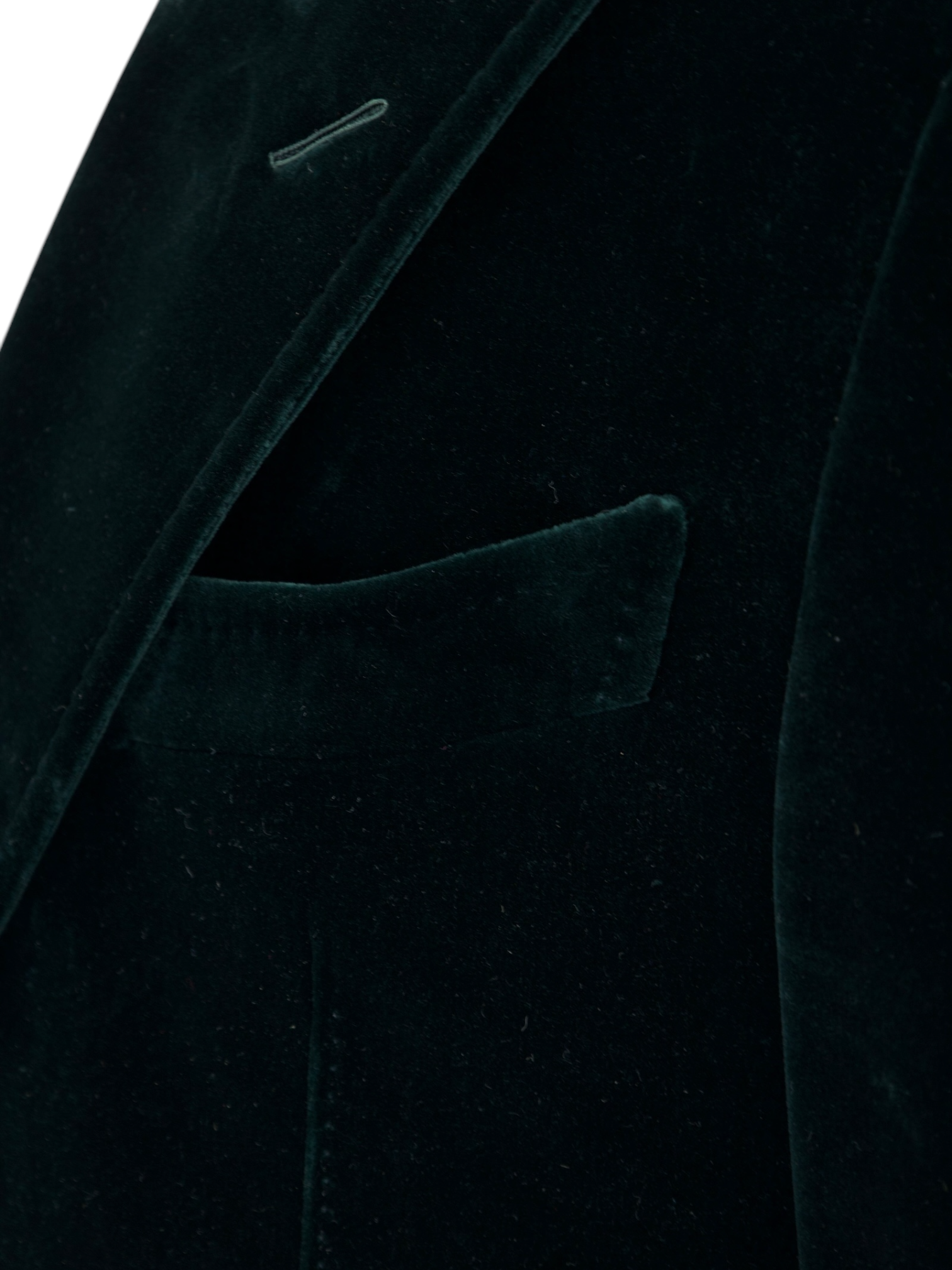 Tom Ford’s unparalleled attention to detail is evident in every aspect of this jacket. From the precise hand-finishing of the velvet to the flawlessly sculpted shoulders and slim-cut profile, the Shelton reflects the brand’s signature fusion of classic tailoring with contemporary edge. The silk-satin lapel adds a refined contrast, while the meticulous stitching ensures durability without compromising its sleek aesthetic. Discover the elaborated sartorial details below.