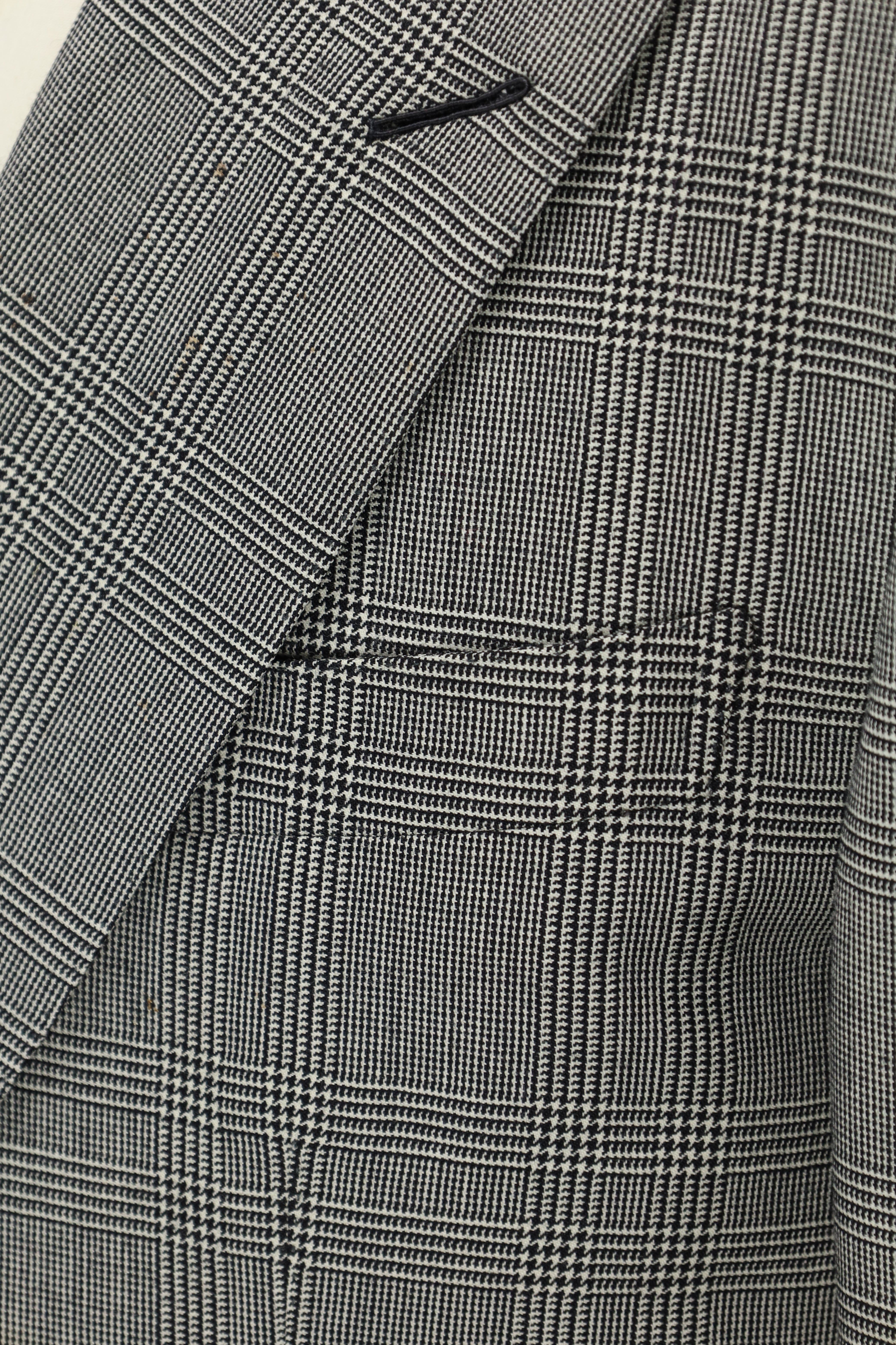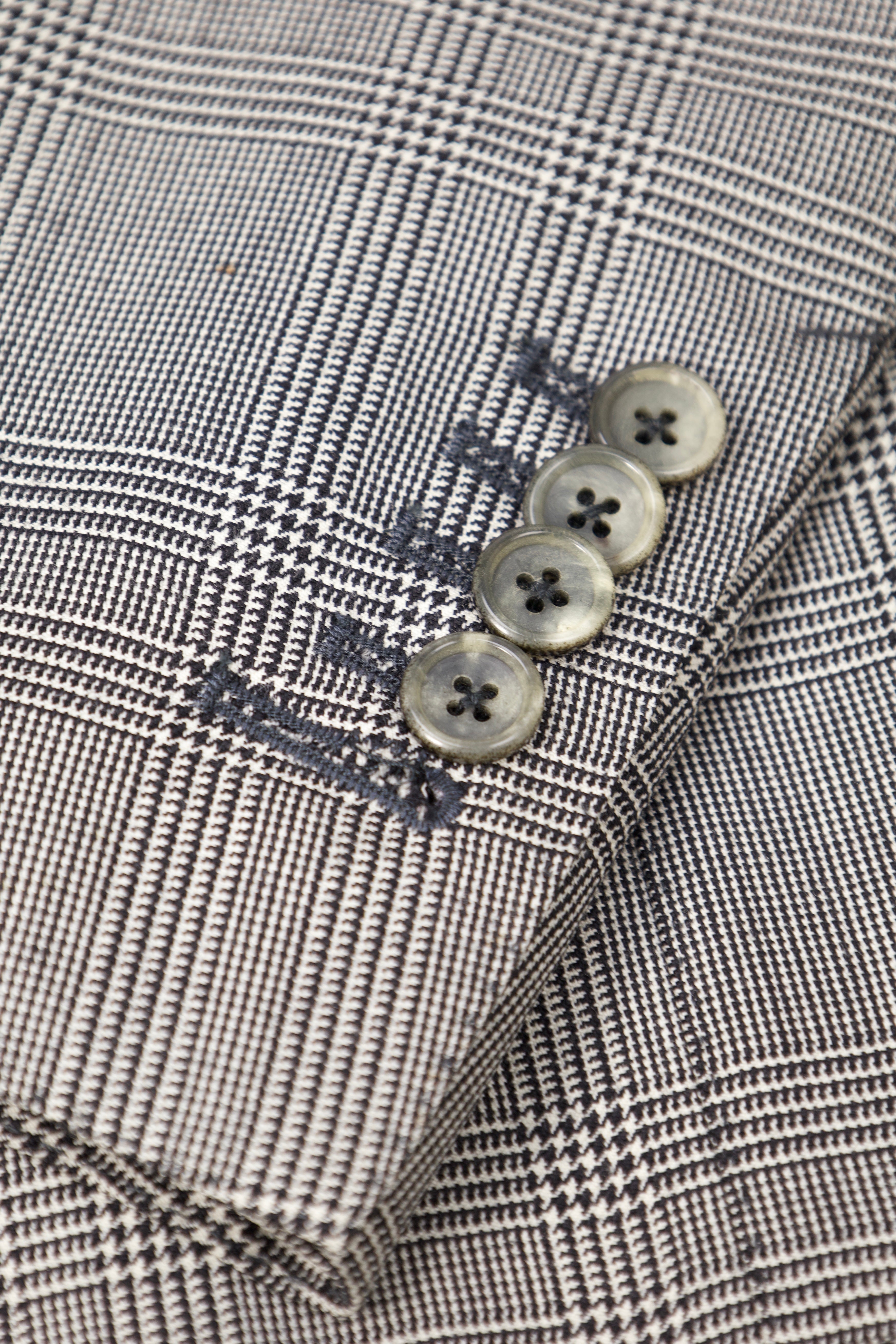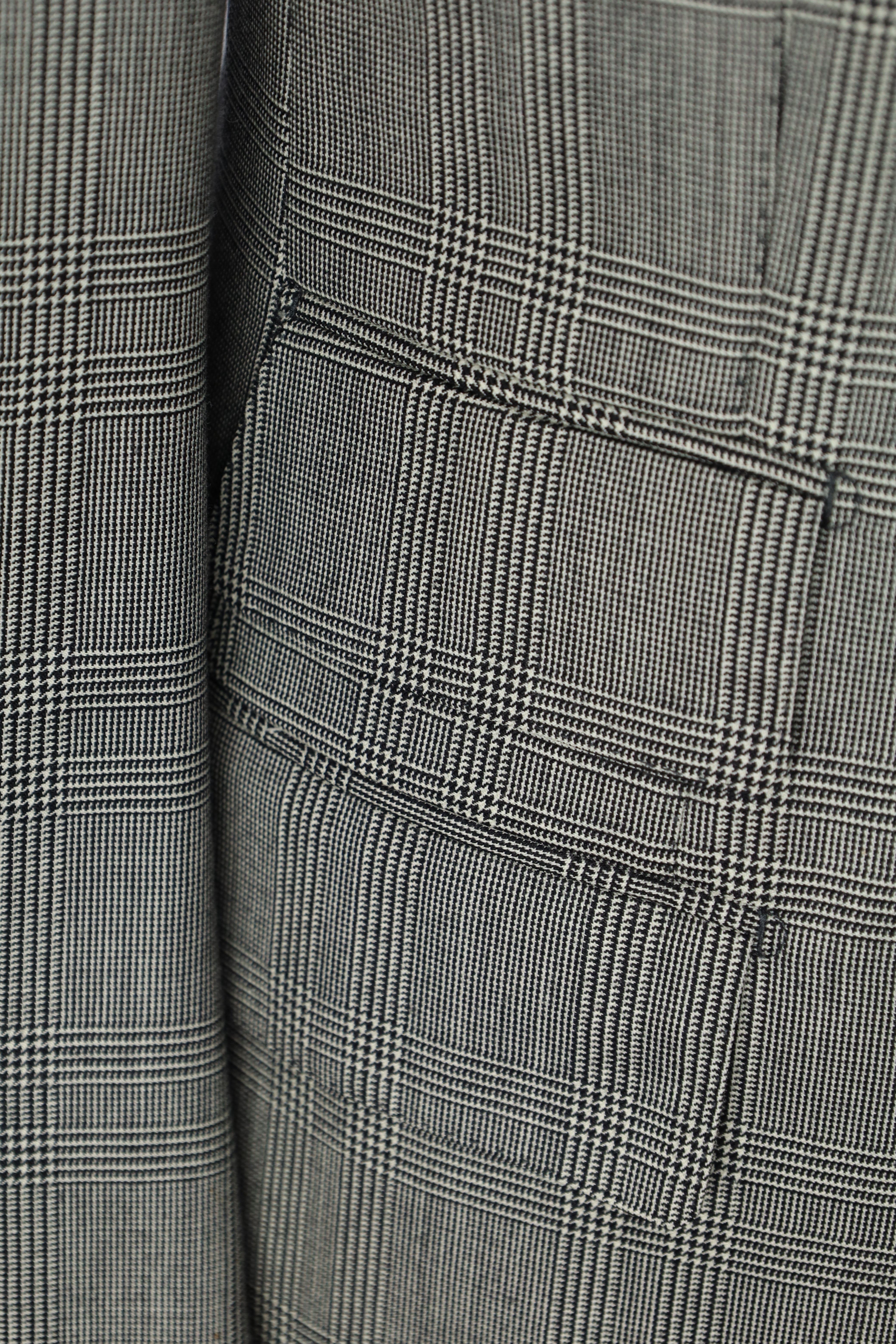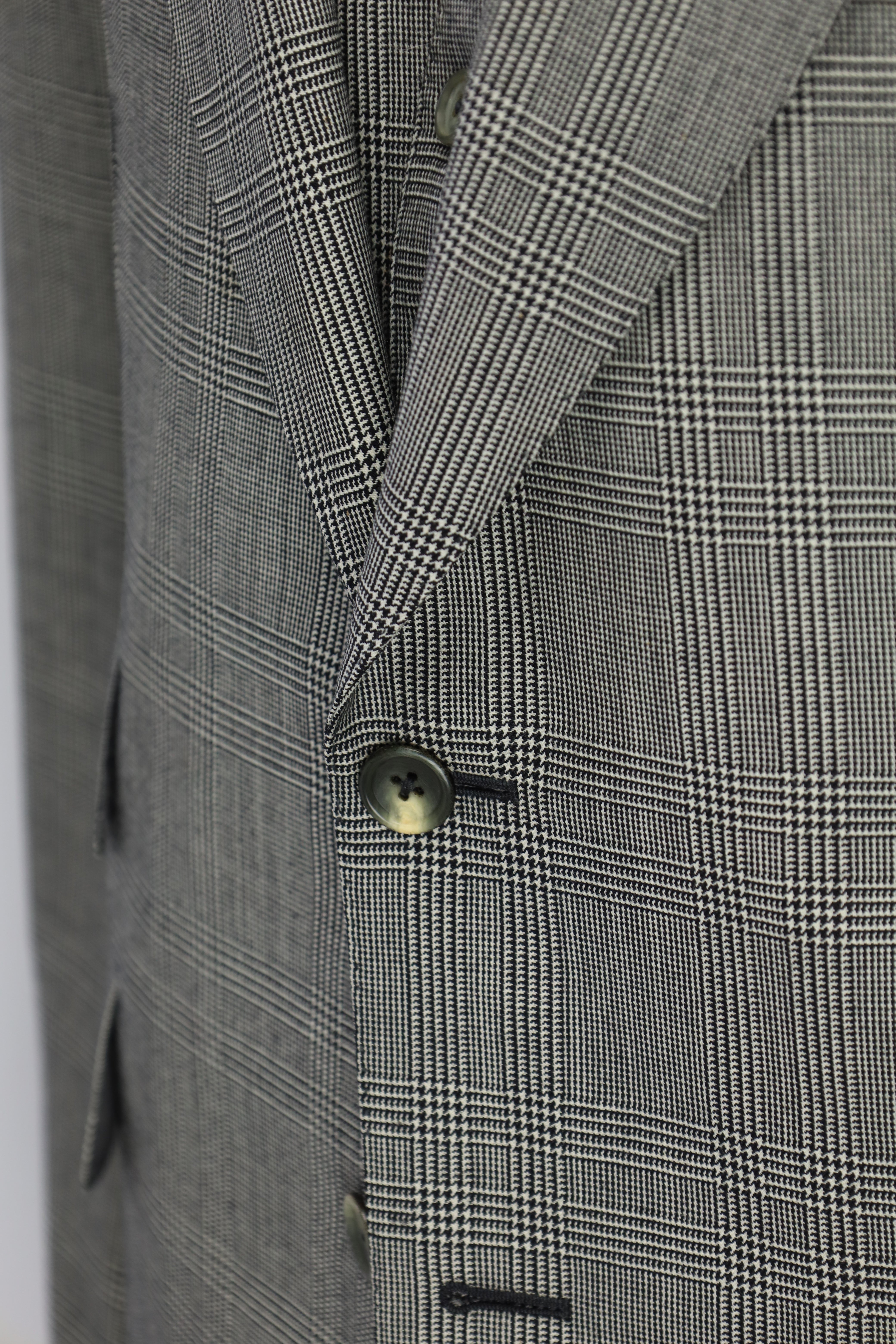 Discover the Tom Ford Windsor Fit: a sophisticated grey 3-Piece Prince of Wales check suit that blends timeless elegance with a contemporary silhouette. Crafted for those who appreciate the finer details, it features a classic cut with broad lapels and structured shoulders, creating a distinguished profile. The regular waist and precisely tailored trousers ensure a comfortable fit without sacrificing style. Perfect for the modern gentleman seeking to make a statement, whether at the office or a special event. Discover the elaborated sartorial details below.