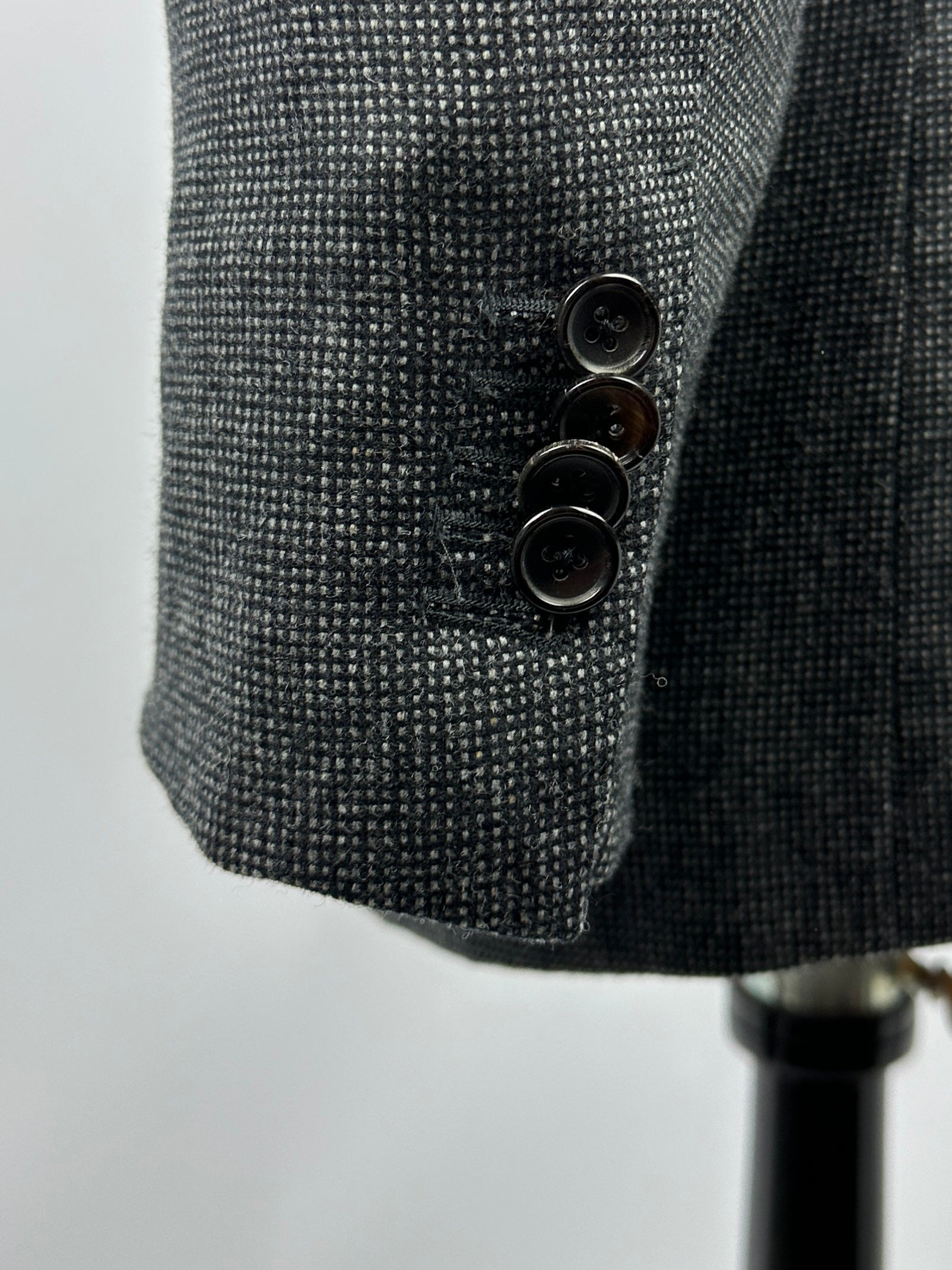 5 functioning horn buttons at the end of the sleeve, with a larger 5th button opening - a quintessential Tom Ford Detail. Even this step, apparently the simplest, is treated with an abundance of detail. Attaching the buttons is a job that requires patience and must be completed to perfection.