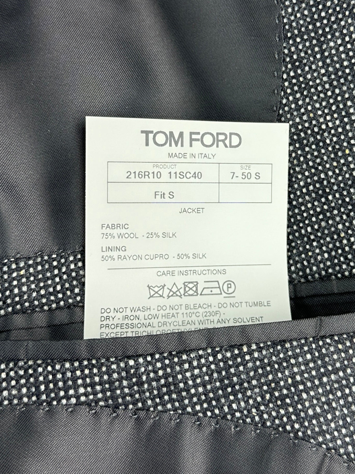 Introducing the Tom Ford Grey Birdseye Pattern Jacket, a timeless piece of impeccable tailoring. This jacket exudes sophistication with its classic birdseye pattern in a refined shade of grey. Crafted with meticulous care, it showcases Tom Ford's unwavering commitment to exceptional quality and style. Whether for formal occasions or smart-casual affairs, this jacket effortlessly elevates your ensemble, making it an essential addition for those who appreciate understated luxury. Discover the elaborated sartorial details below.