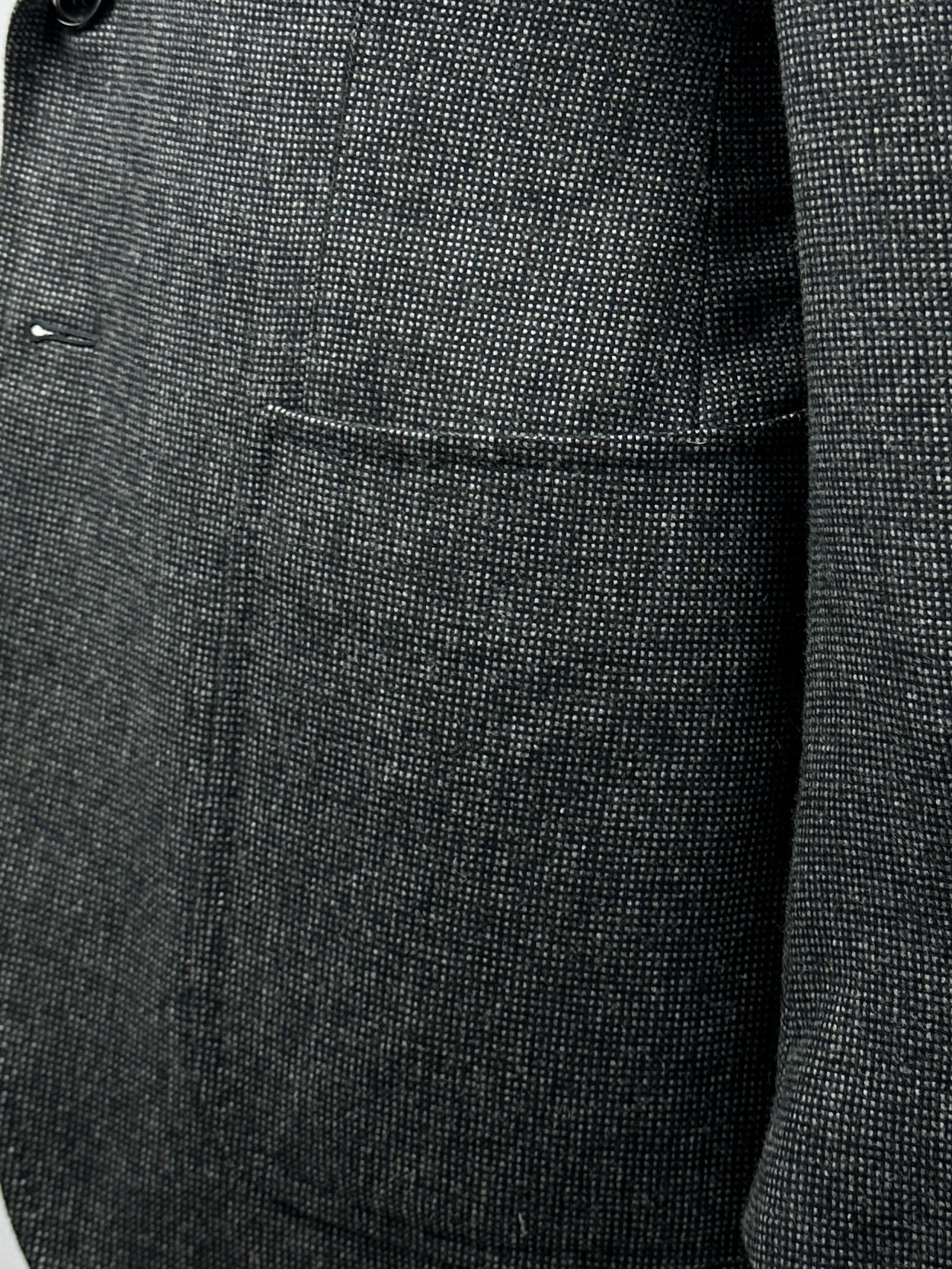 The barchetta chest pocket is not only curved and blunted, as in the southern Italian style, but the corner is rounder right off.