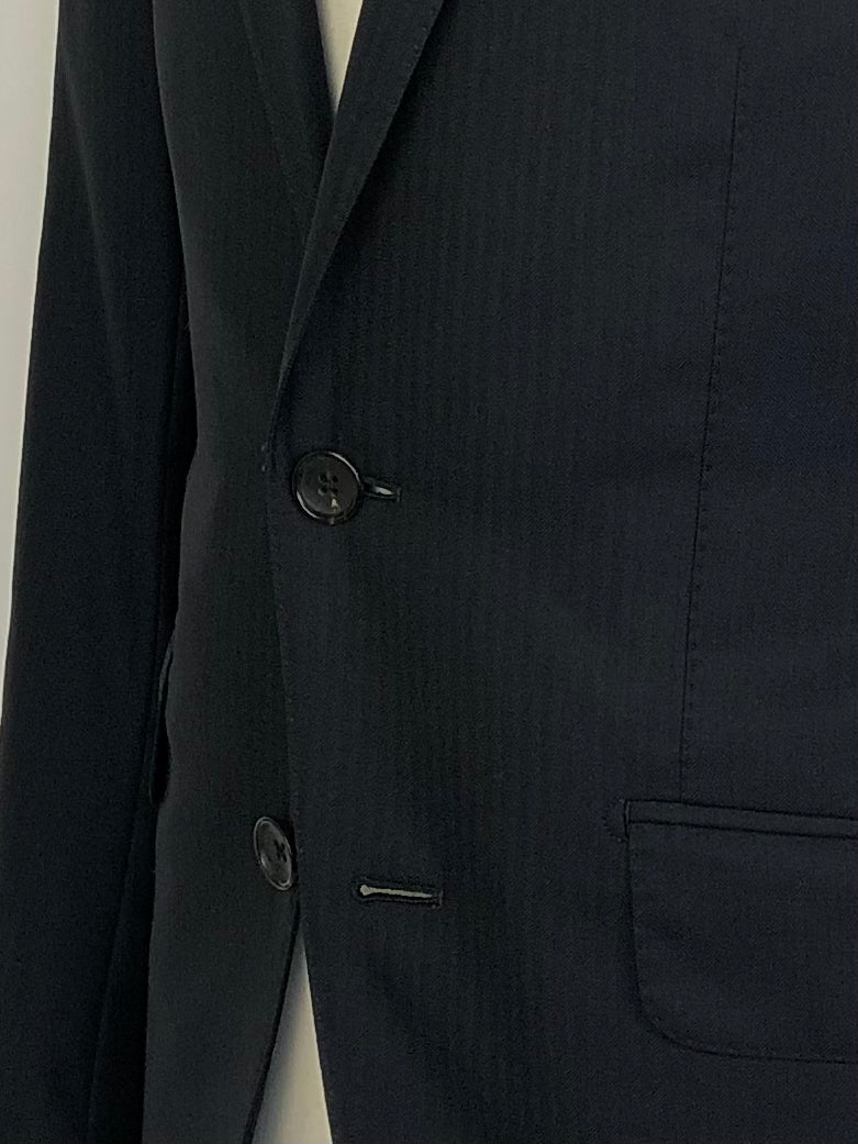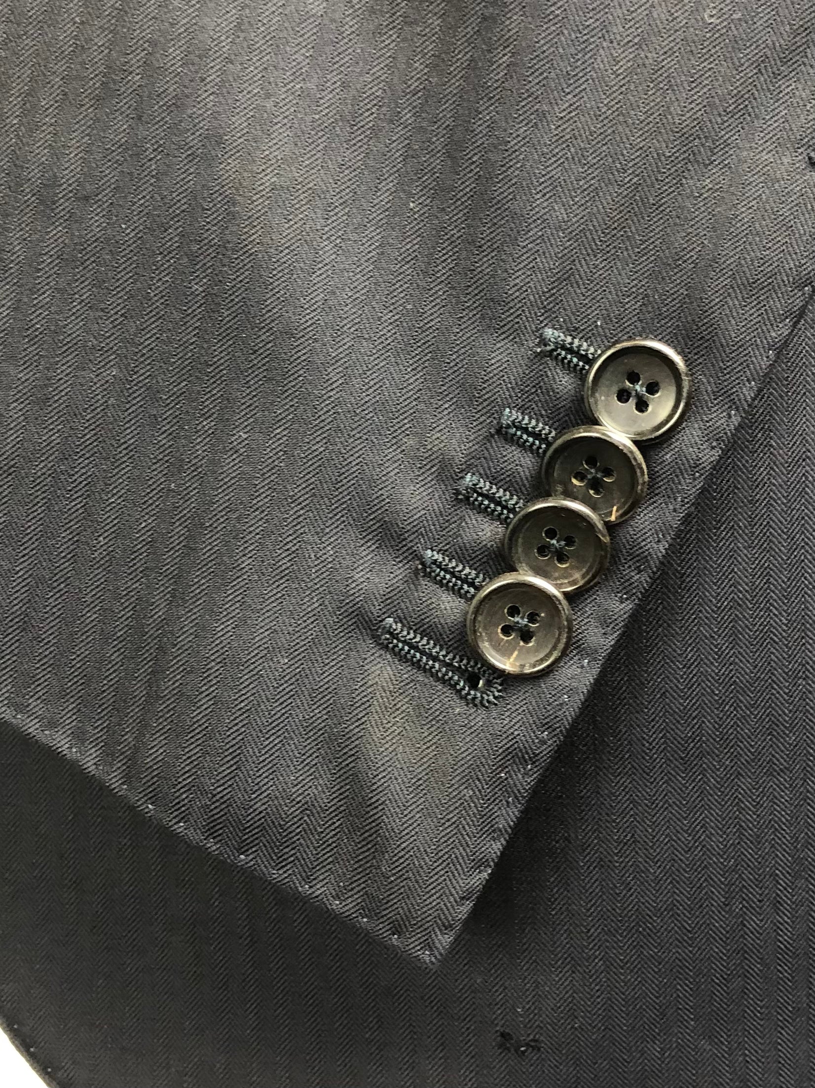 5 functioning horn buttons at the end of the sleeve, with a larger 5th button opening - a quintessential Tom Ford Detail. Even this step, apparently the simplest, is treated with an abundance of detail. Attaching the buttons is a job that requires patience and must be completed to perfection.