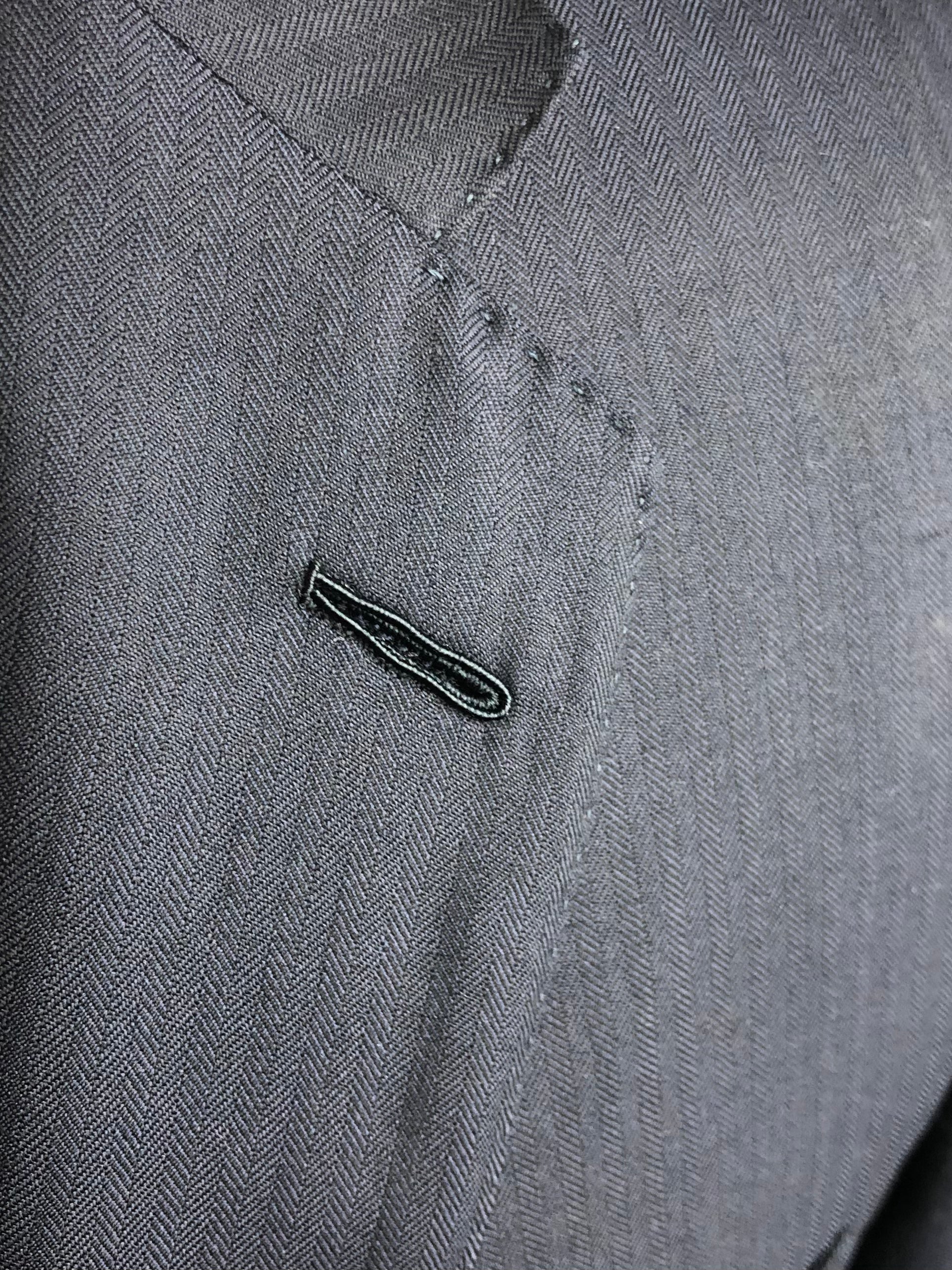 The elegant, longer brother of the Milanese. With its thin and extra long gimp cord inside, this is one of the most challenging buttonholes to make by hand. Even a highly skilled tailor will take about 20 minutes to finish it.