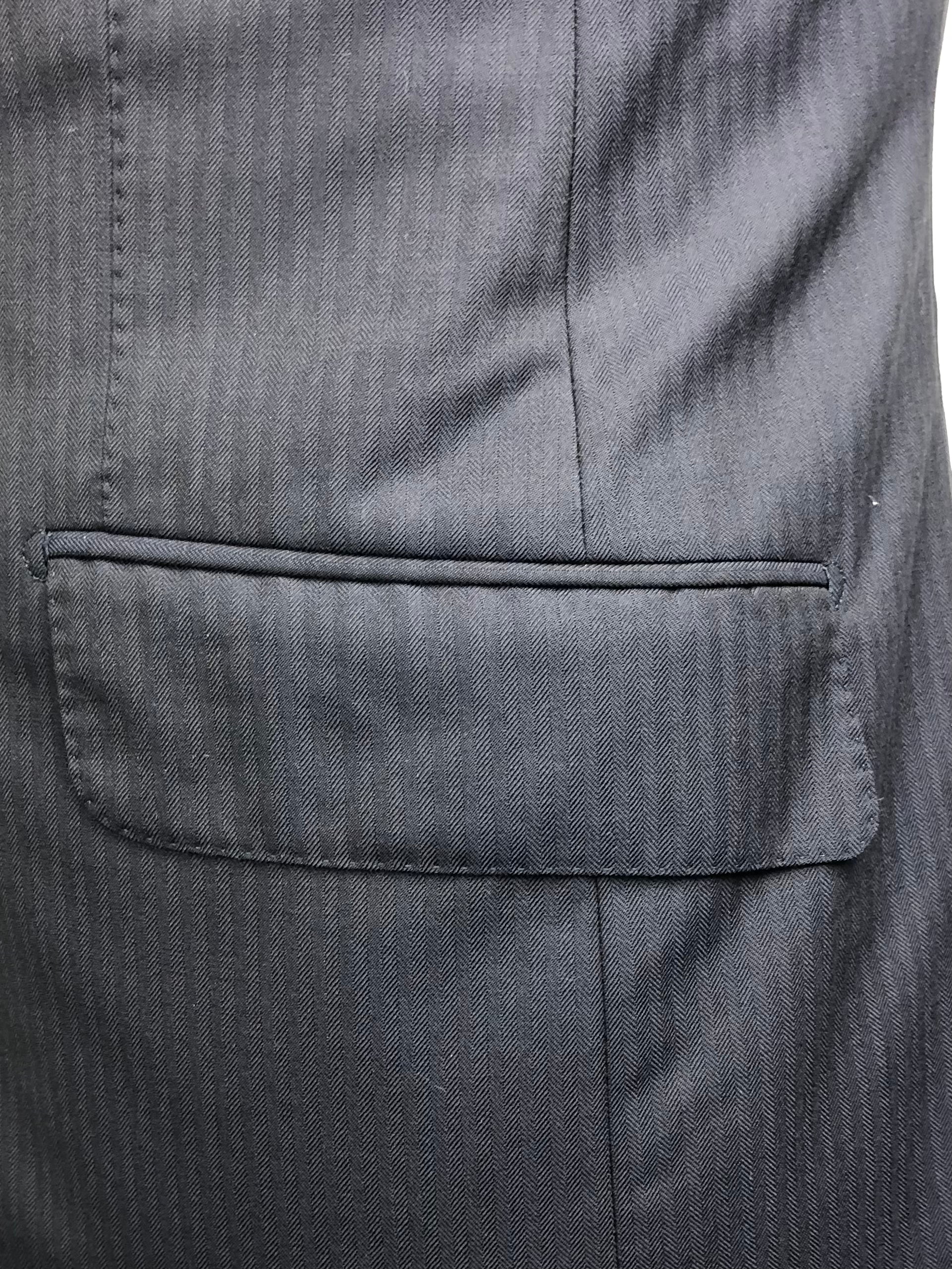 This was originally supposed to keep debris from getting into jacket pockets when worn in the country. Flap pockets occupy a sort of middle ground in terms of formality: they are the main choice for business suits, but they can also appear on sport coats as a testament to their casual origins.
