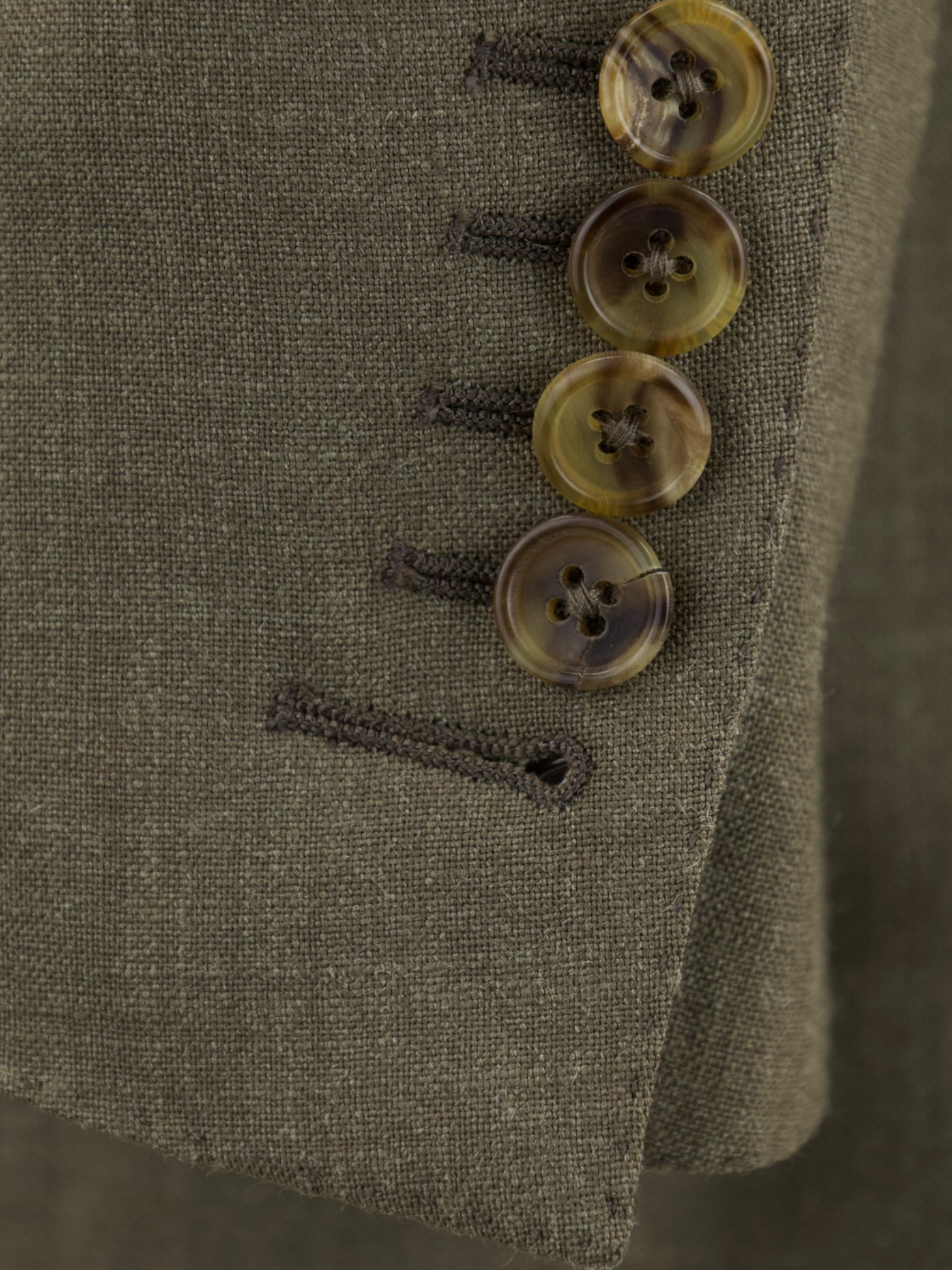 5 functioning horn buttons at the end of the sleeve, with a larger 5th button opening - a quintessential Tom Ford Detail. Even this step, apparently the simplest, is treated with an abundance of detail. Attaching the buttons is a job that requires patience and must be completed to perfection.