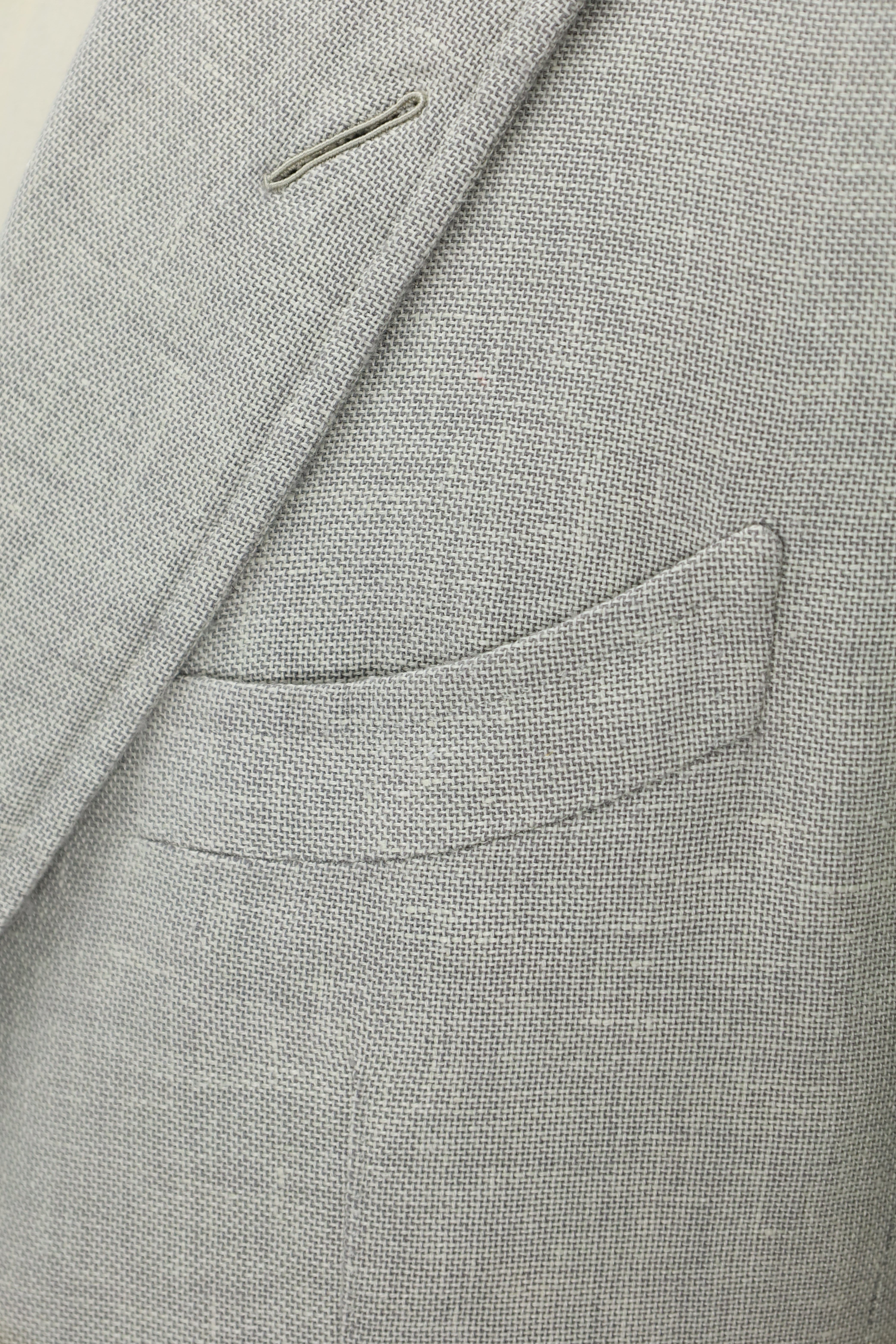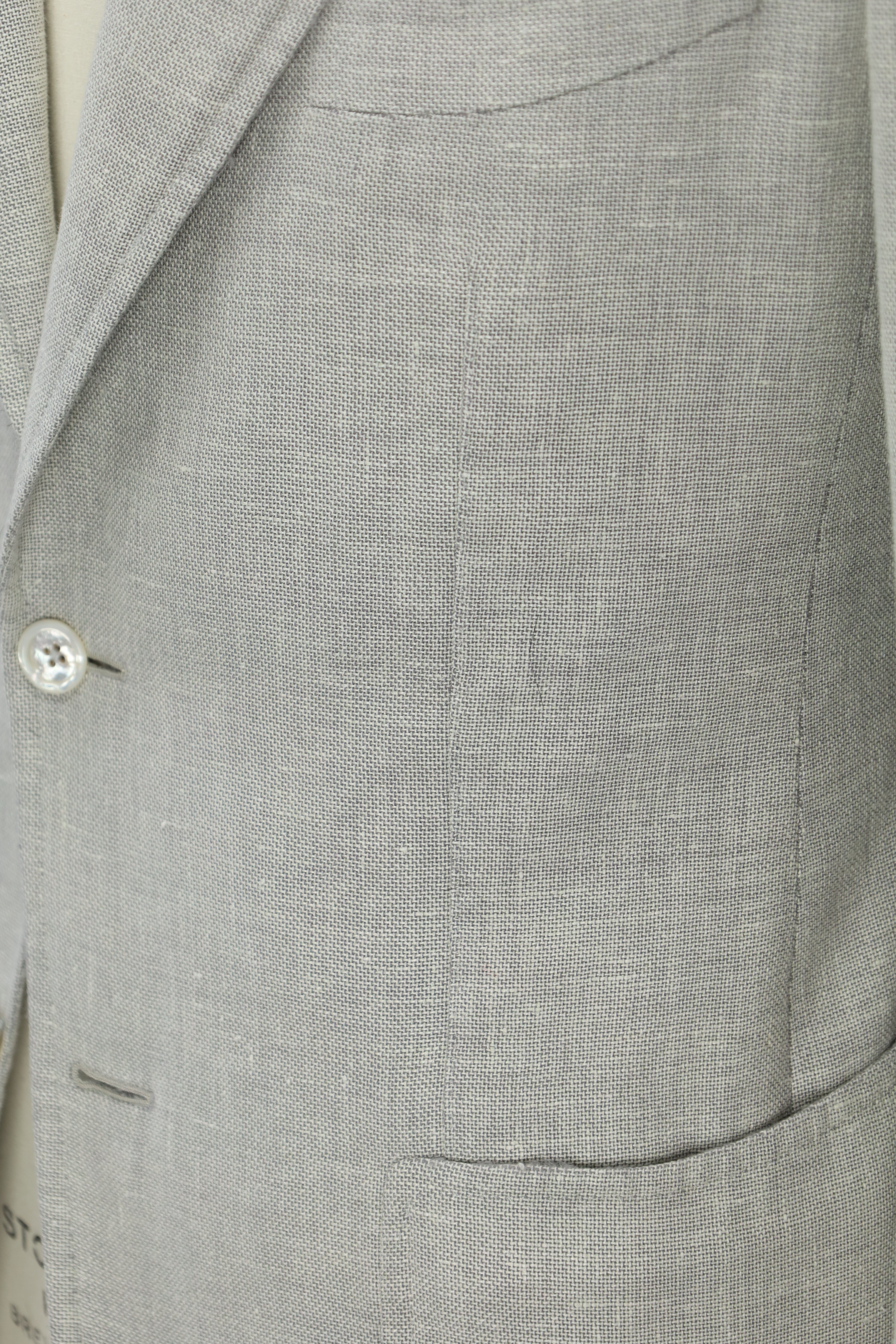 The barchetta chest pocket is not only curved and blunted, as in the southern Italian style, but the corner is rounder right off.