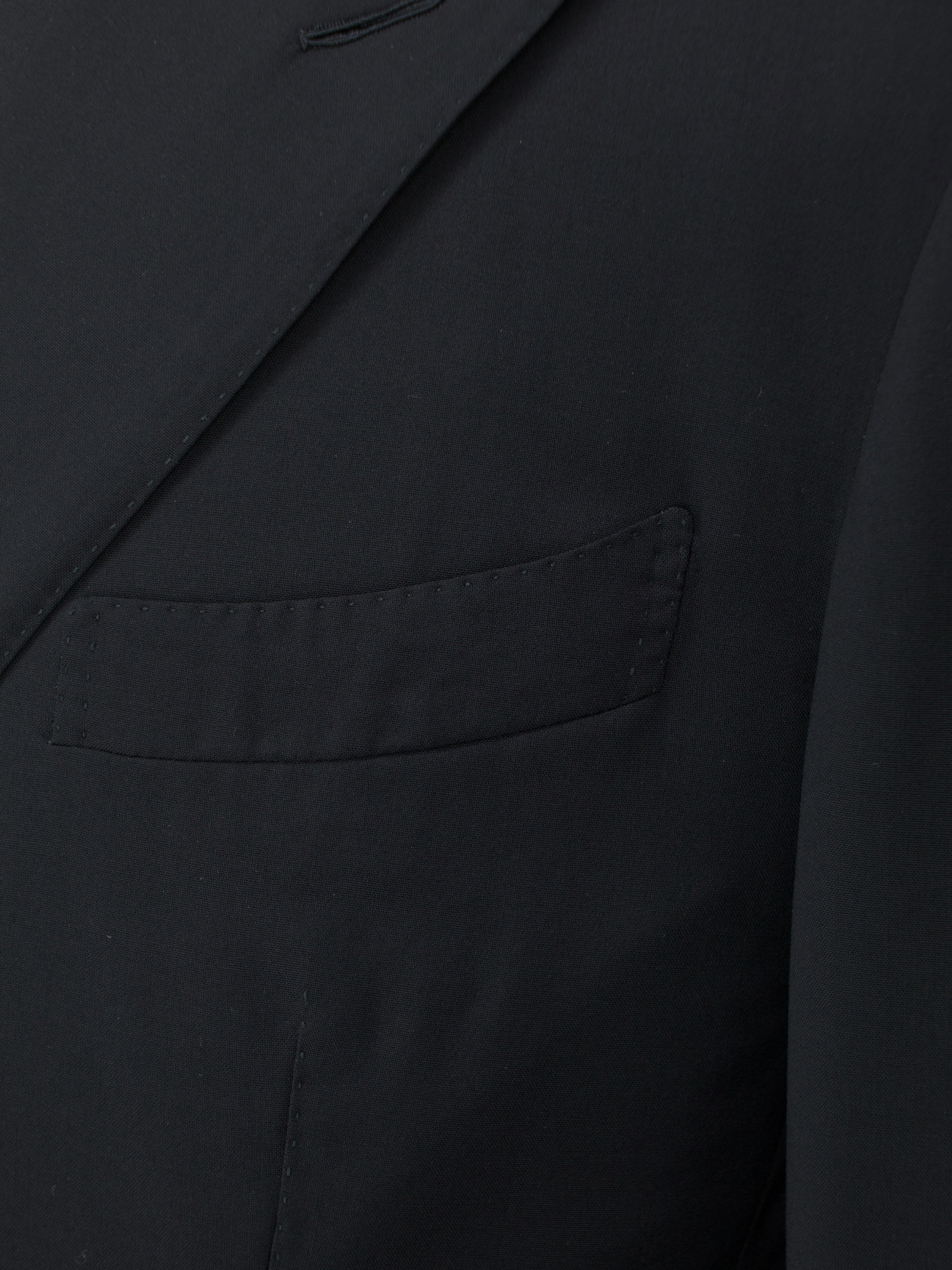 The barchetta chest pocket is not only curved and blunted, as in the southern Italian style, but the corner is rounder right off.