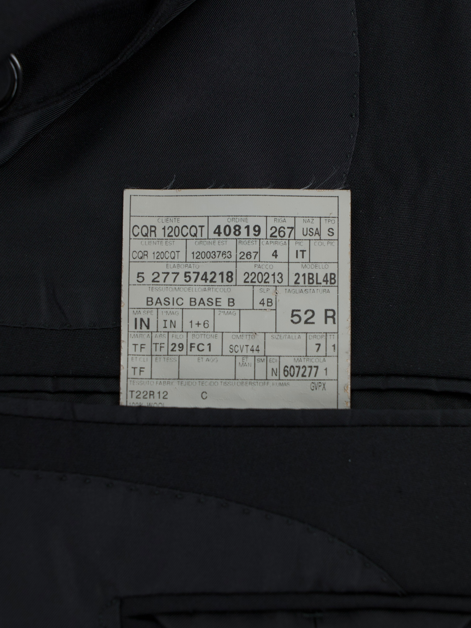 Pre-owned, not loved - yet. The buttons have to be set and the buttonholes have to be created by your local tailor. The (horn) buttons are enclosed within the left inner pocket.
