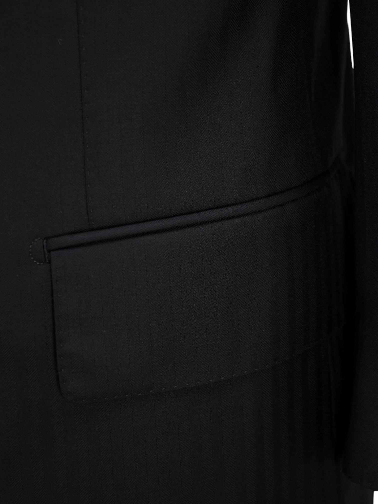 The first jacket pockets were sewn inside the lining or seams of garments, and are called “jetted” pockets. In their simplest form, they consist of little more than a slit. Suits that are the most formal, especially tuxedos, have no flap pockets altogether to give the piece a more streamlined look.