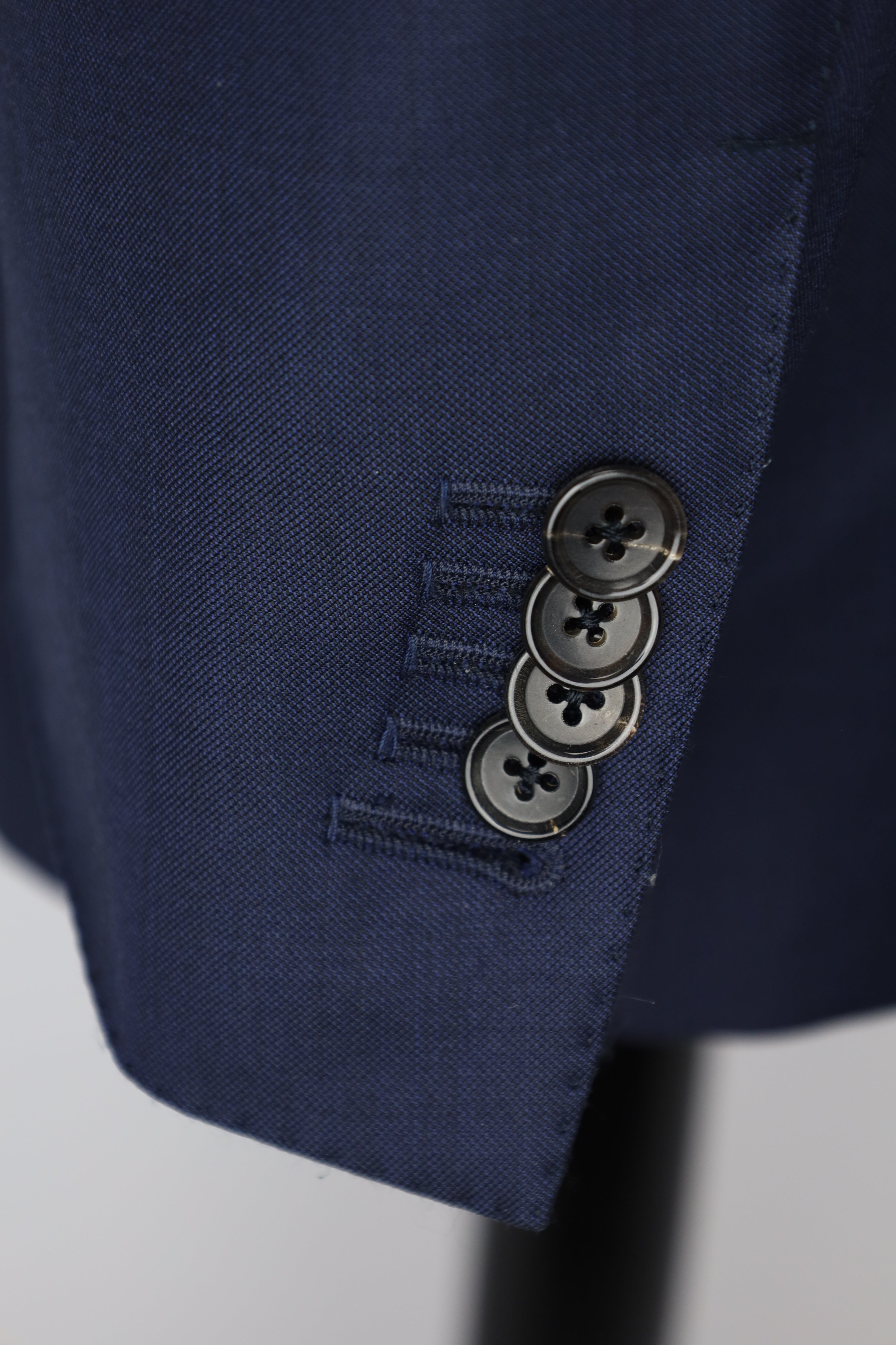 5 functioning horn buttons at the end of the sleeve, with a larger 5th button opening - a quintessential Tom Ford Detail. Even this step, apparently the simplest, is treated with an abundance of detail. Attaching the buttons is a job that requires patience and must be completed to perfection.