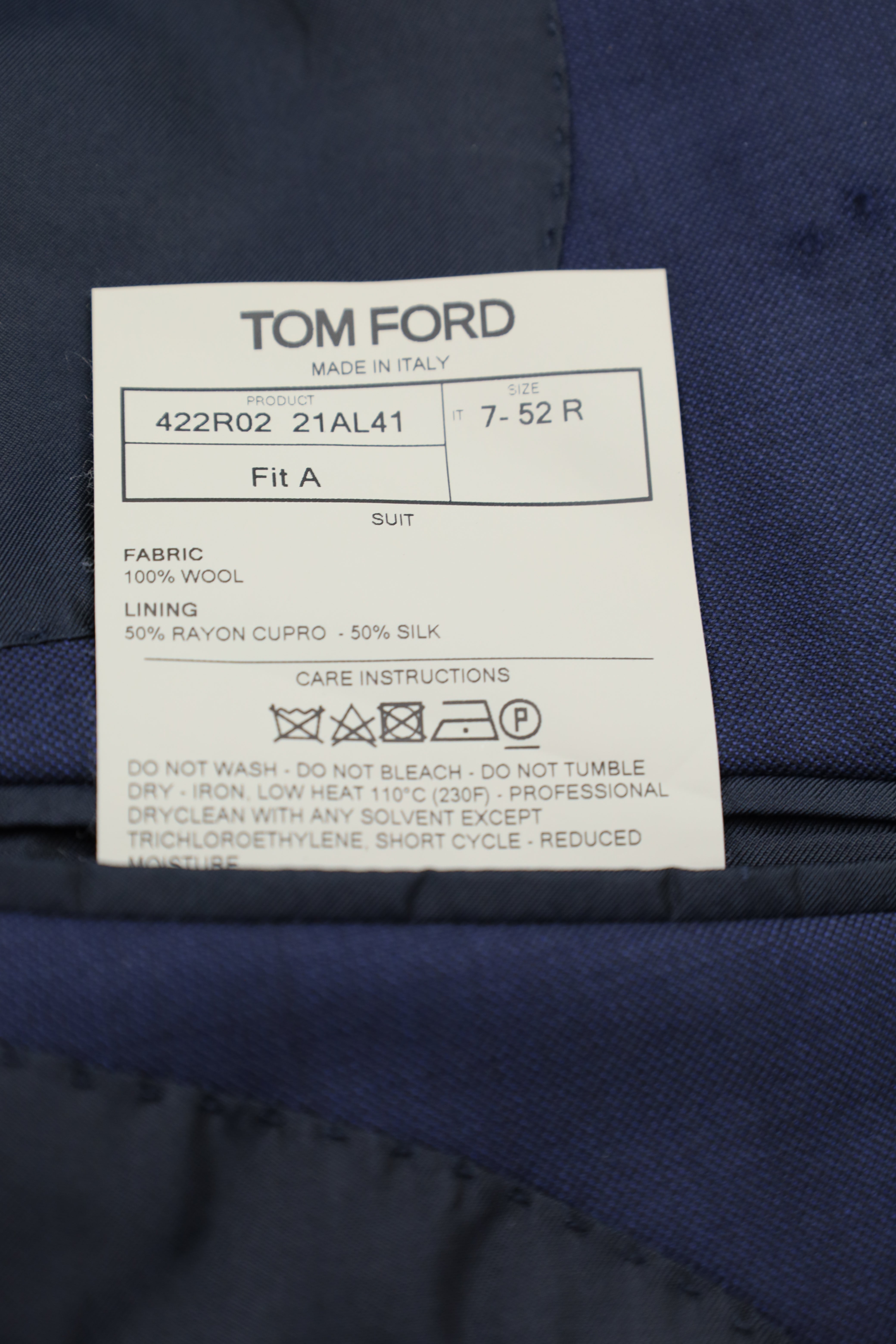 Most of Tom Ford’s garments are manufactured in Italy and Switzerland. A Tom Ford suit takes eight weeks to craft – and the process begins with the choice of fabric. Tom Ford’s wool fabrics are spun in England on 18th-century machines while its wool-silk and wool-cashmere blends are made in northern Italy. A tailor or seamstress devotes nineteen hours of exceptional care to ensure the longevity of the - tailored - garment.