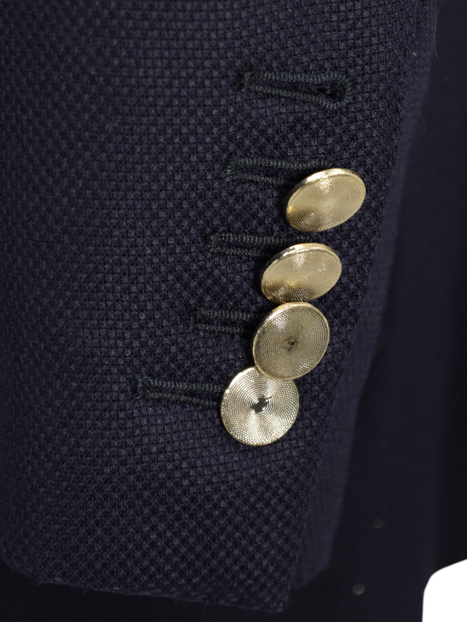 5 functioning horn buttons at the end of the sleeve, with a larger 5th button opening - a quintessential Tom Ford Detail. Even this step, apparently the simplest, is treated with an abundance of detail. Attaching the buttons is a job that requires patience and must be completed to perfection.