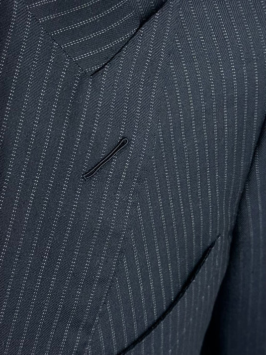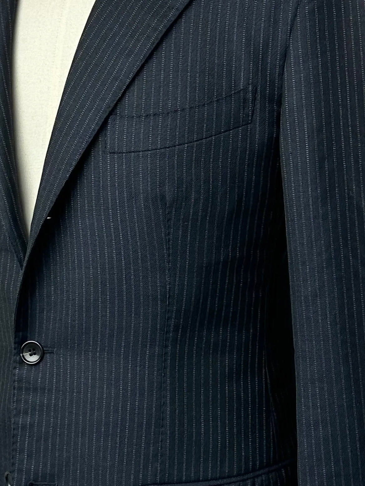 The ‘tre bottoni stirato a due’, also known as the three rolling on two lapel style, is perhaps the most infamous characteristic of the Neapolitan style jacket. The top button and buttonhole are ornamental, so are left unbuttoned. As the lapel rolls down it elegantly folds over the top button and stops just 4 cm above the second button creating the distinct roll of the lapel the style is known for. As it is intended to remain unbuttoned, the top buttonhole is actually made inside out so the beautiful side will still be visible.