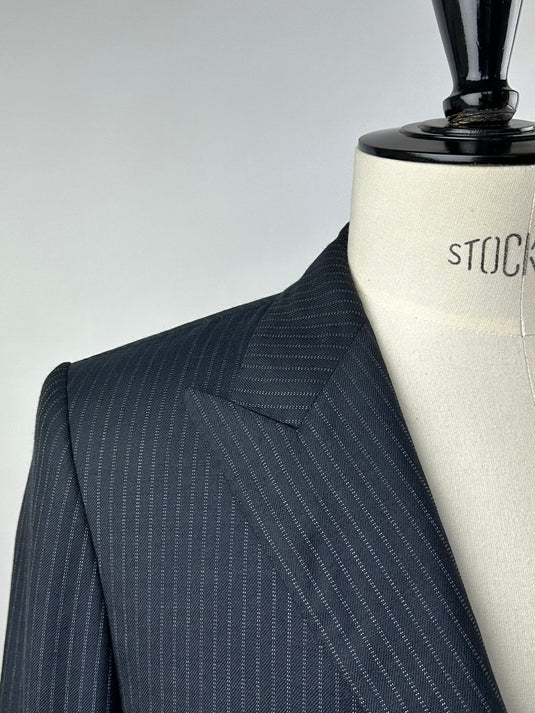 With Tom Ford’s tailoring you’ll possess the charisma of James Bond. The signature look, cut from a luxury mohair blend, is inspired by the British cut of a Windsor which contains sharp padded - roped - shoulders, peak lapels, slightly suspended around the waist, elongated legs which result in the ultimate masculine look.
