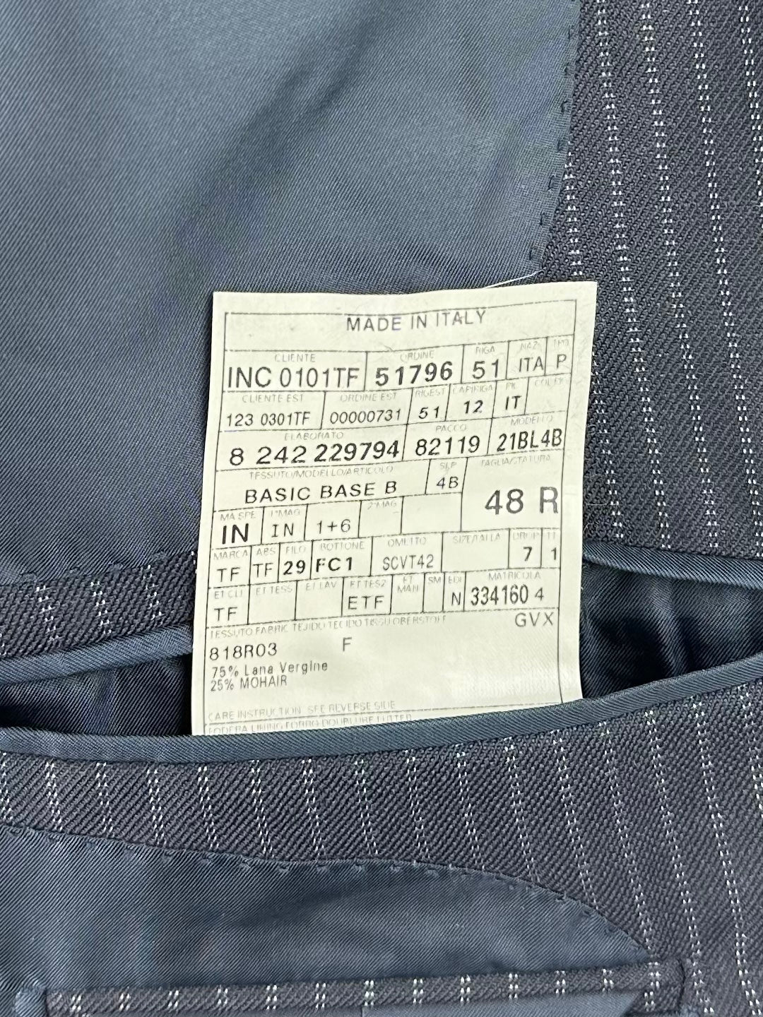 The tailors adds two darts - think of them as pinched seams - to ensure the jacket’s body achieves a slim silhouette. The process, called mezzo punto riprese, is done entirely by hand.