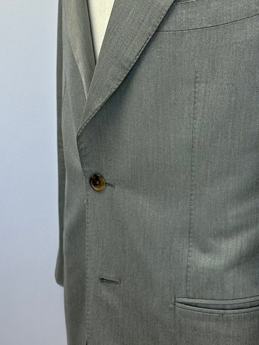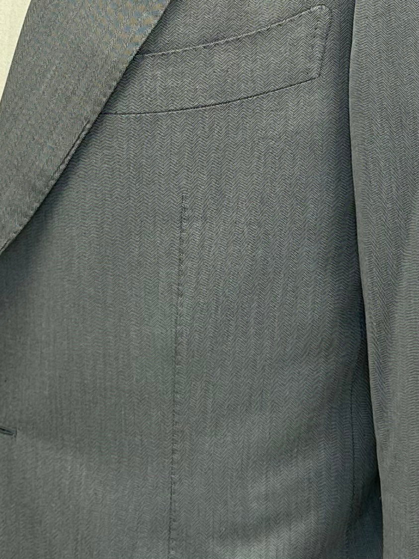 The barchetta chest pocket is not only curved and blunted, as in the southern Italian style, but the corner is rounder right off.