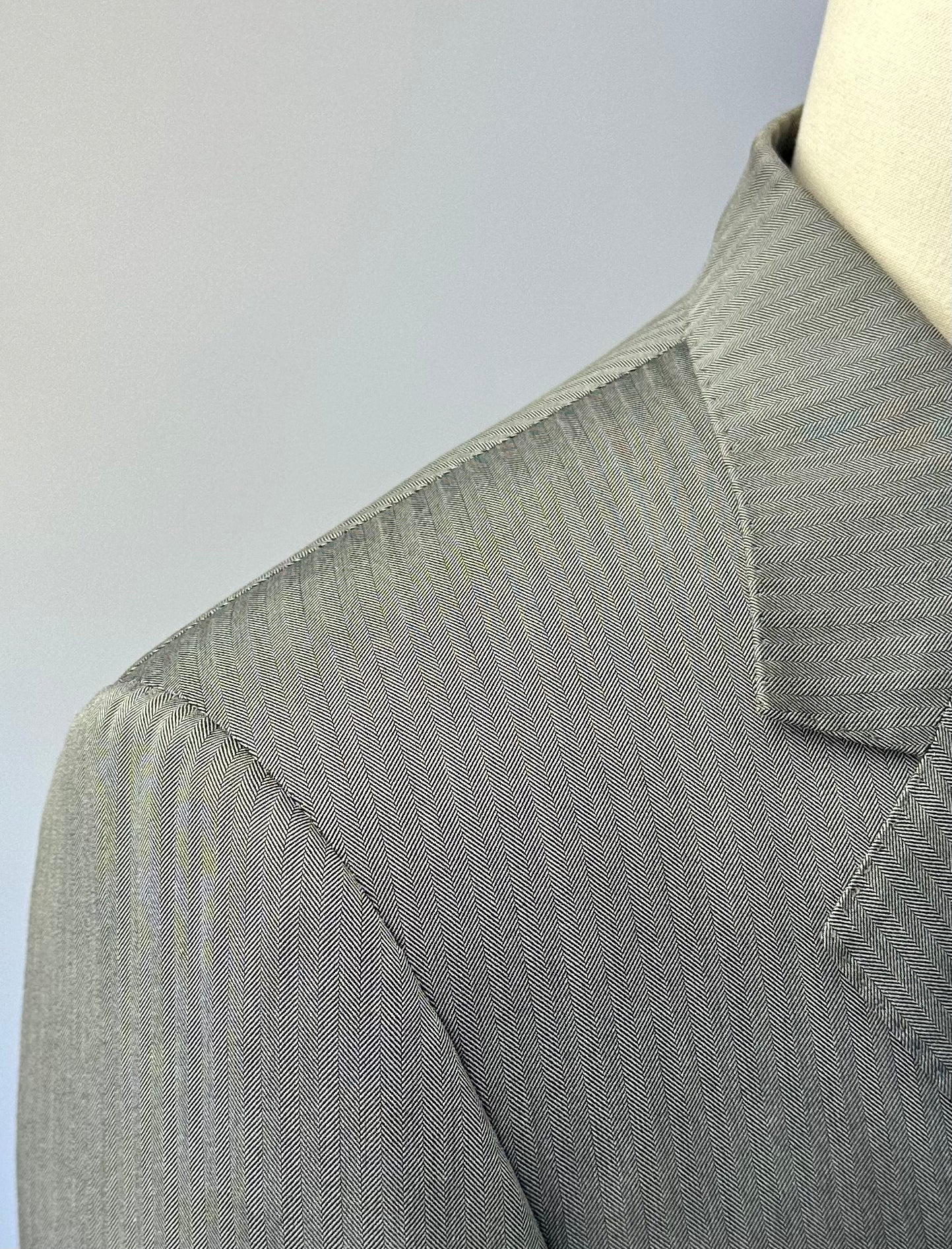 A roped shoulder - or sleeve - head describes the bumped shape or ridge of the sleeve’s attachment to the shoulder. The higher it is, the more imposing the shoulder line appears. This can often be found in iconic British tailoring.