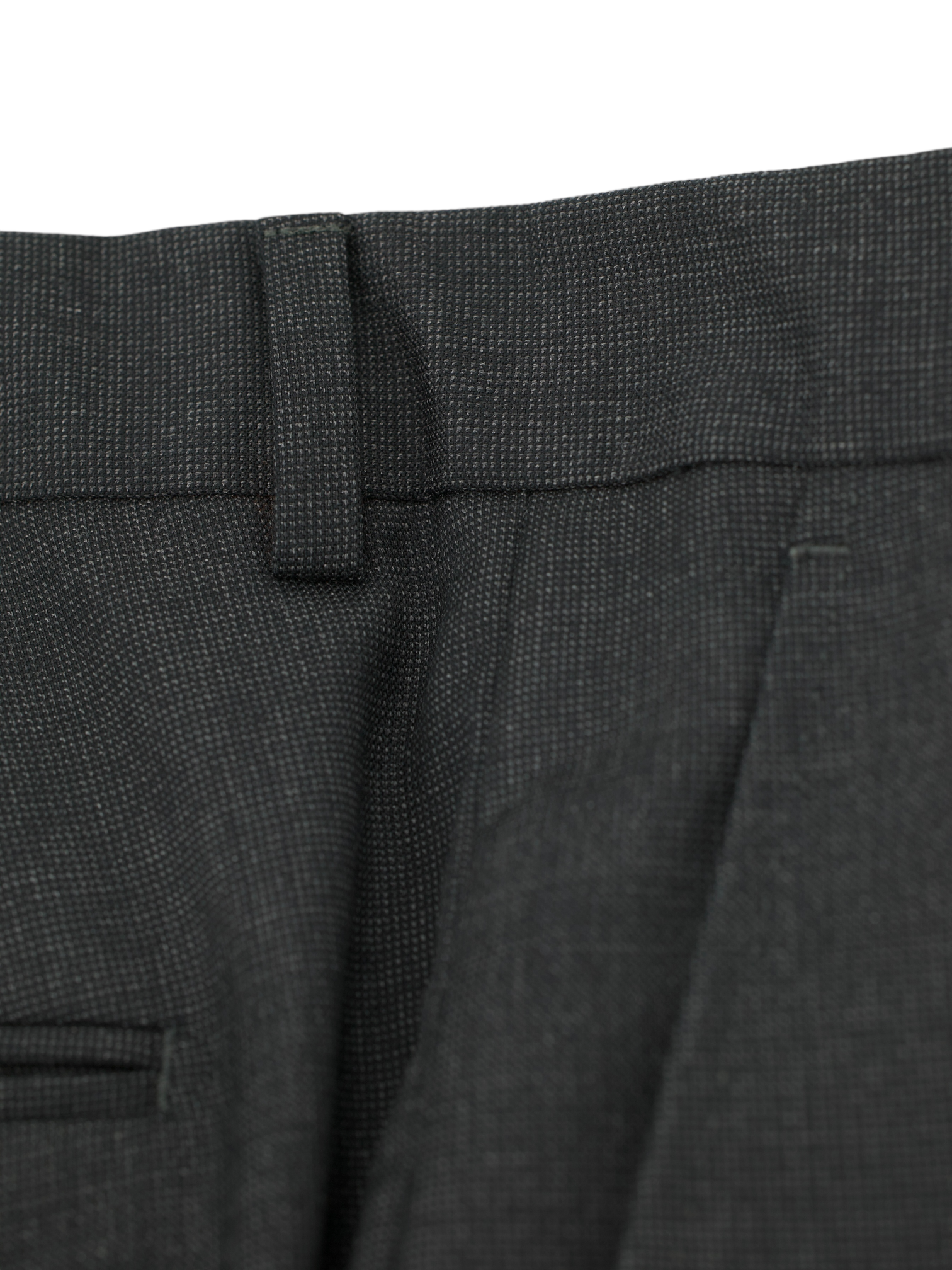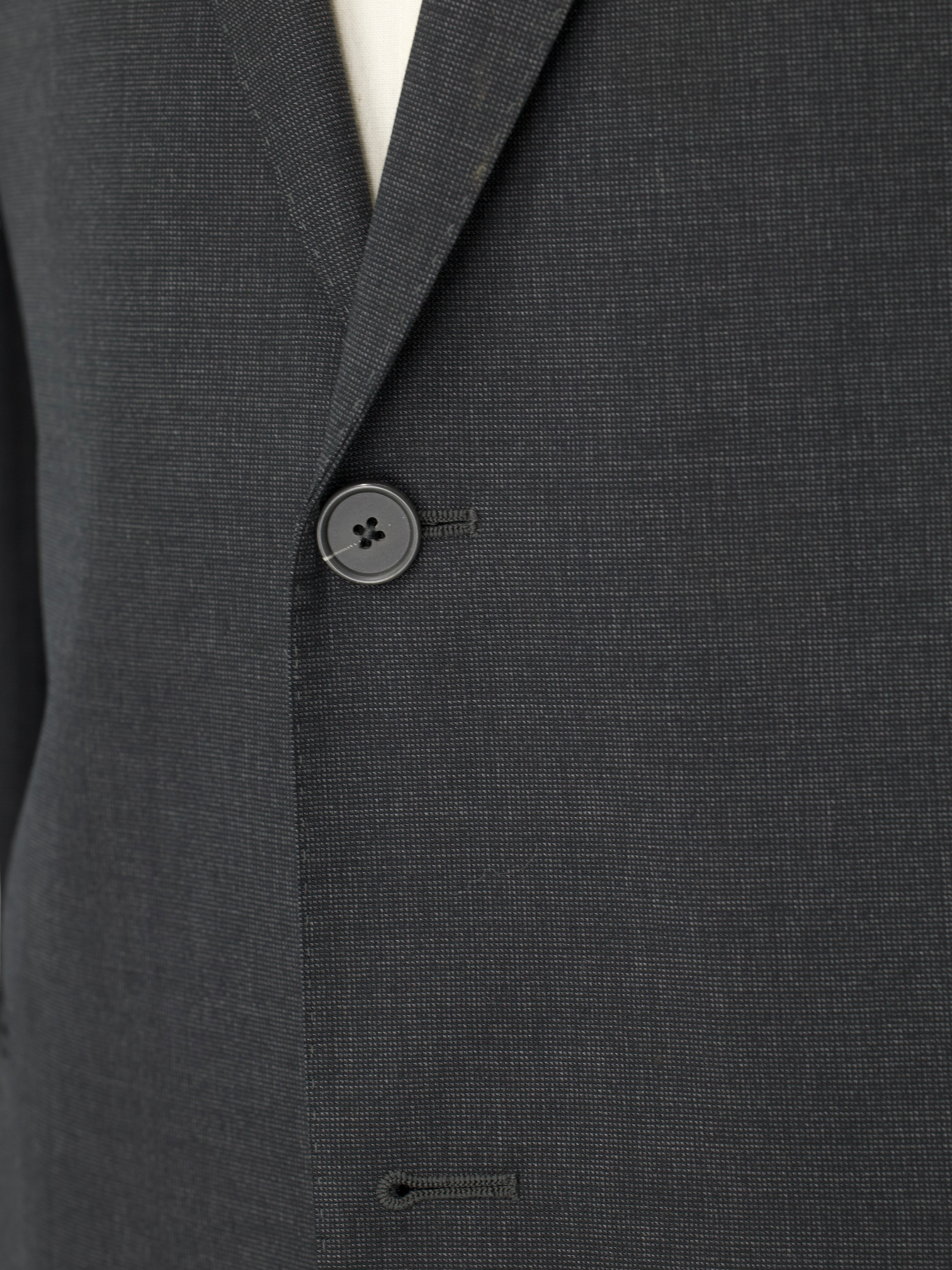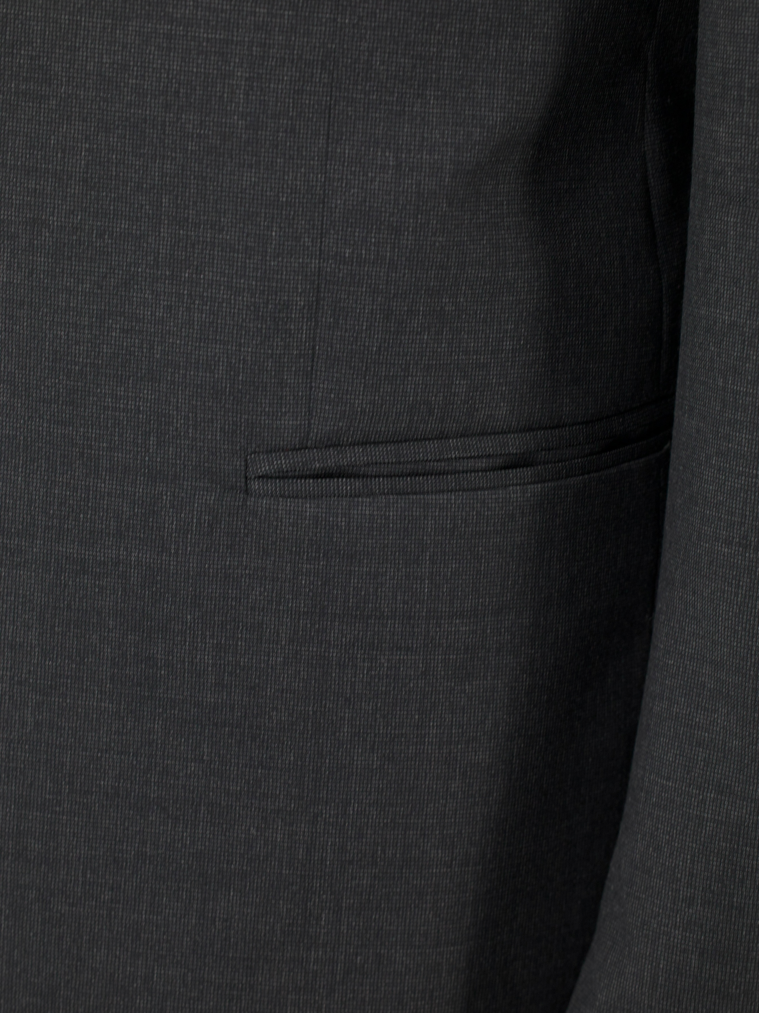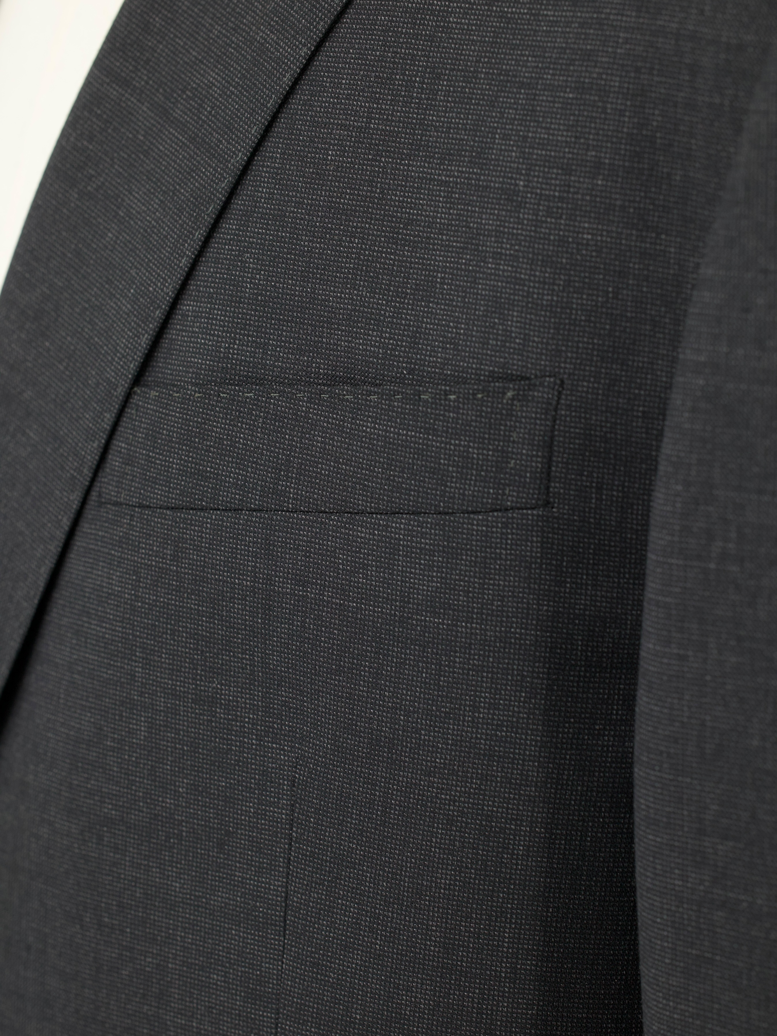 Discover the quiet precision of this Z-Zegna suit, tailored in anthracite grey pure wool with a subtle pinpoint weave that lends texture without drawing attention. Designed as a versatile foundation piece, it features classic notch lapels, structured shoulders, and flap pockets for a timeless silhouette. The jacket is fully lined for a clean drape and reliable comfort, while the matching trousers complete the look with understated ease.